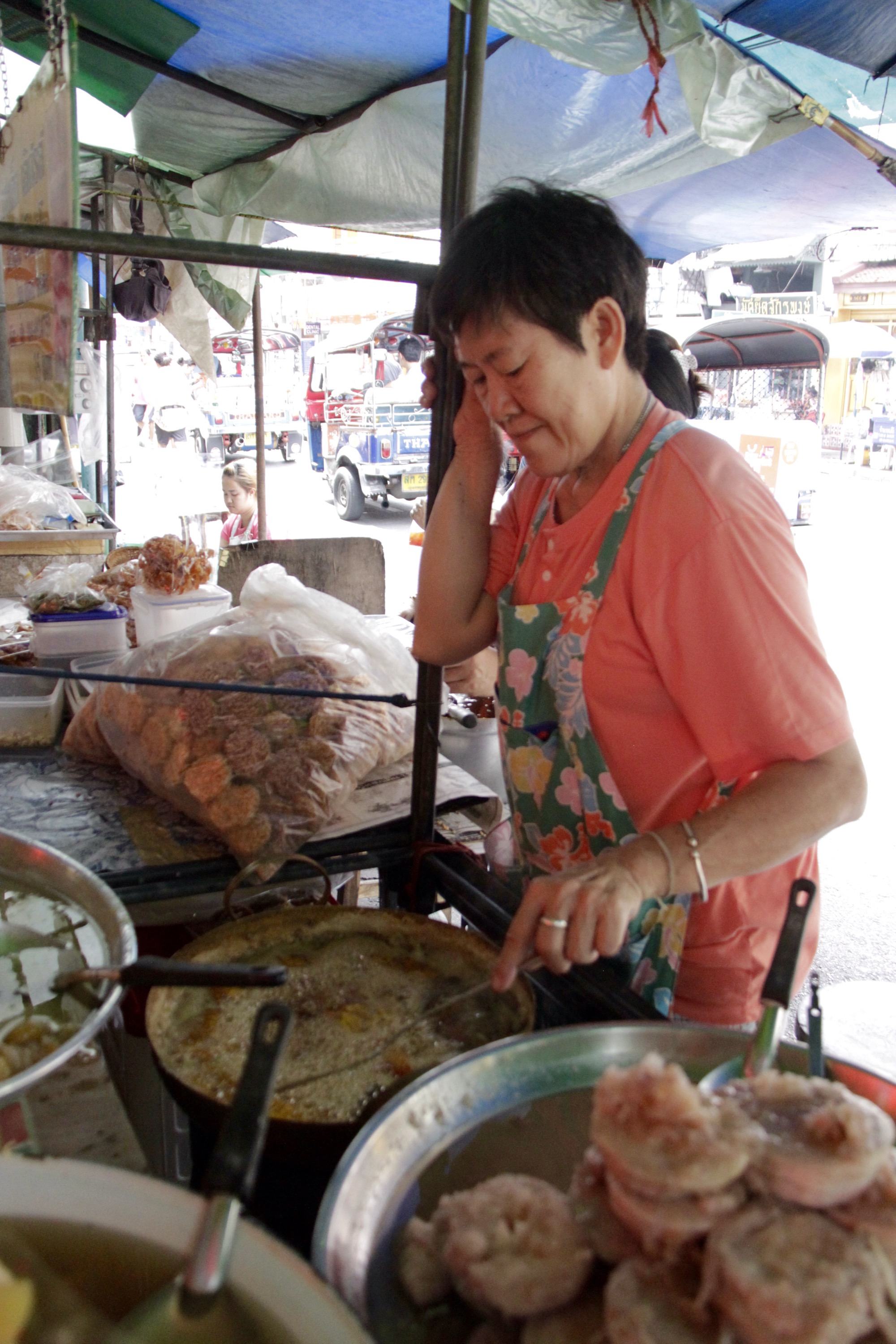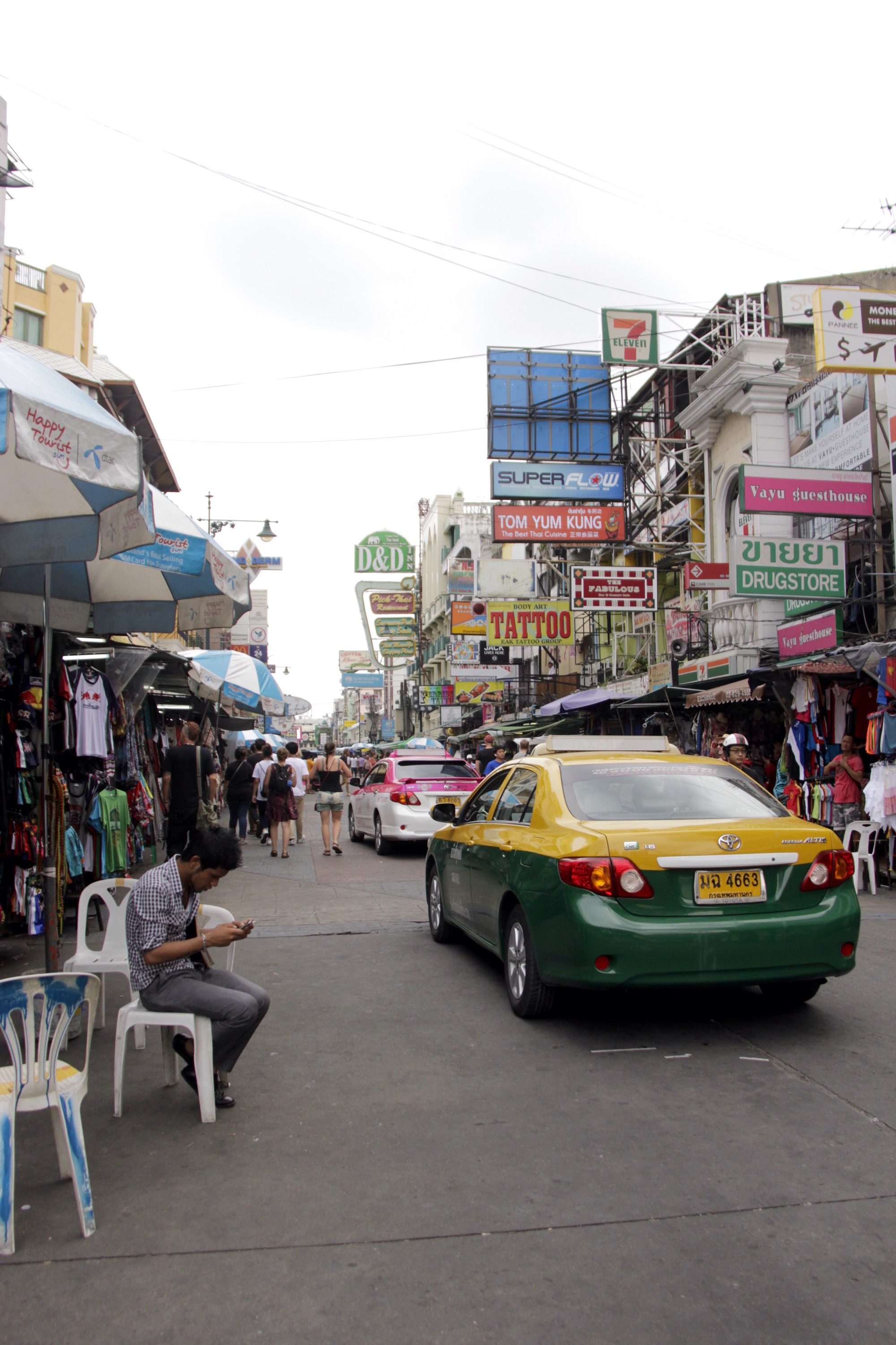 First, BREAKFAST! I walked to Khao San Road, really “well” reputed for its night life full of drunk and irresponsible backpackers and its day market. I asked for a mango juice to this lady on a little stall and I delightfully took a sip of it before realizing there was crushed ice in it… You can imagine my face transforming from a stupid smile to a grimace of horror. Well that was it… It was too late…
