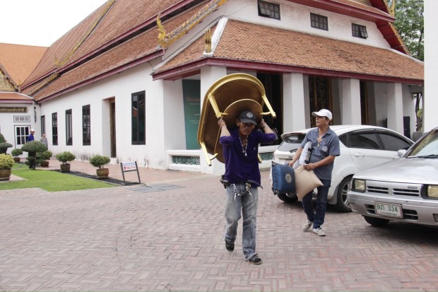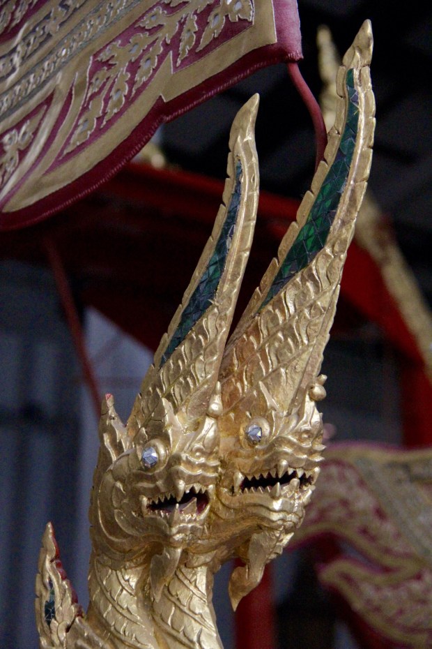 I walked to the Grand Palace but even with a sarong around my neck, the access was not permited to me and my-no-sleeve-really-respectful-high-collar-tee-shirt. Or maybe it was the Fashion Police and them too disagree with the elephant pants I realized that half of the place was close already. It was three. And it was expensive. And I had to rent these kind of purple silky pajama to visit everything. I thought that I will see a lot of temple during my stay in Asia so I decided to visit the Nationnal Museum instead.