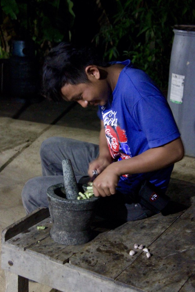 I am the only tourist and I accept all the stares as they are always followed with a big smile. Noi and the boys are buying food for the barbecue. He explains what are the differents things in the bag and tells me that I will have a special meal with “no spices”. I knew by experience now that it means that I will have my mouth on fire but it will be nothing compares to what they are used to eat.