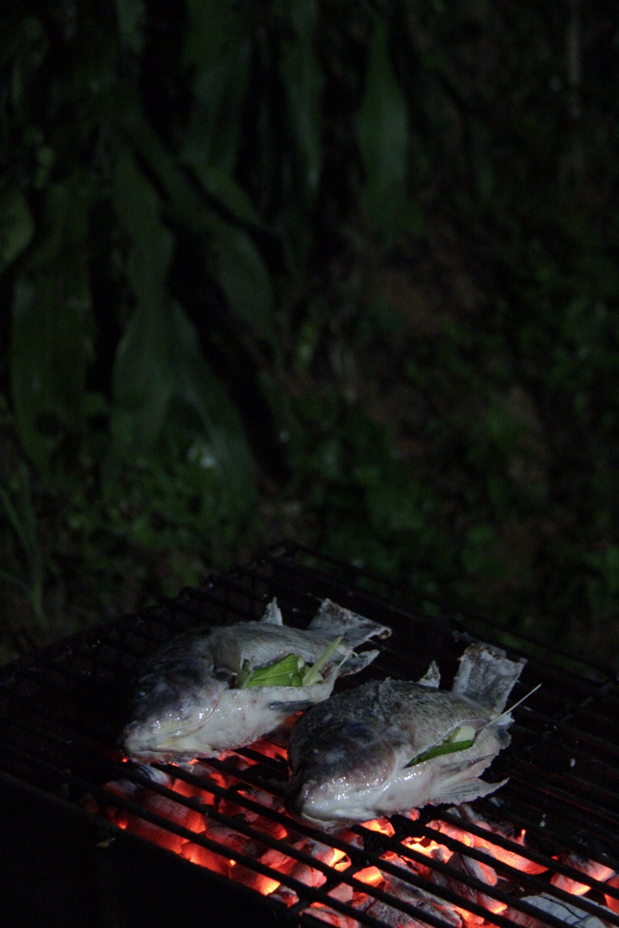 The fish is slowly cooking on the fire. I’m observing the way they prepare the differents meals and try to learn everything. I even try this strange flat thing that looks like a crisp after being grilled on the fire. I understand afterall that it was cow skin. Hmmm. Ok… Not for me!