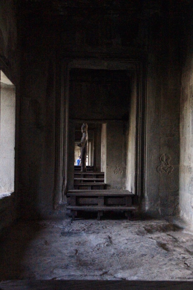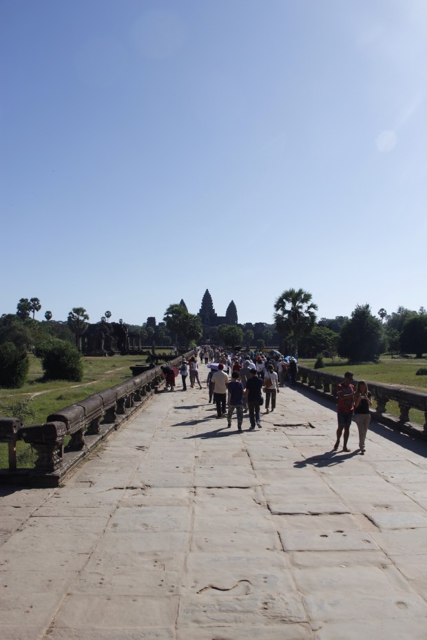 I took my three days pass ticket, a smile as big as the cat from Cheshire’s on my face and continued on the way direction Angkor Thom. On the way I stopped to this really amazing place, surrounded by water. The majesty of the old stones behind a lake were pretty impressive.