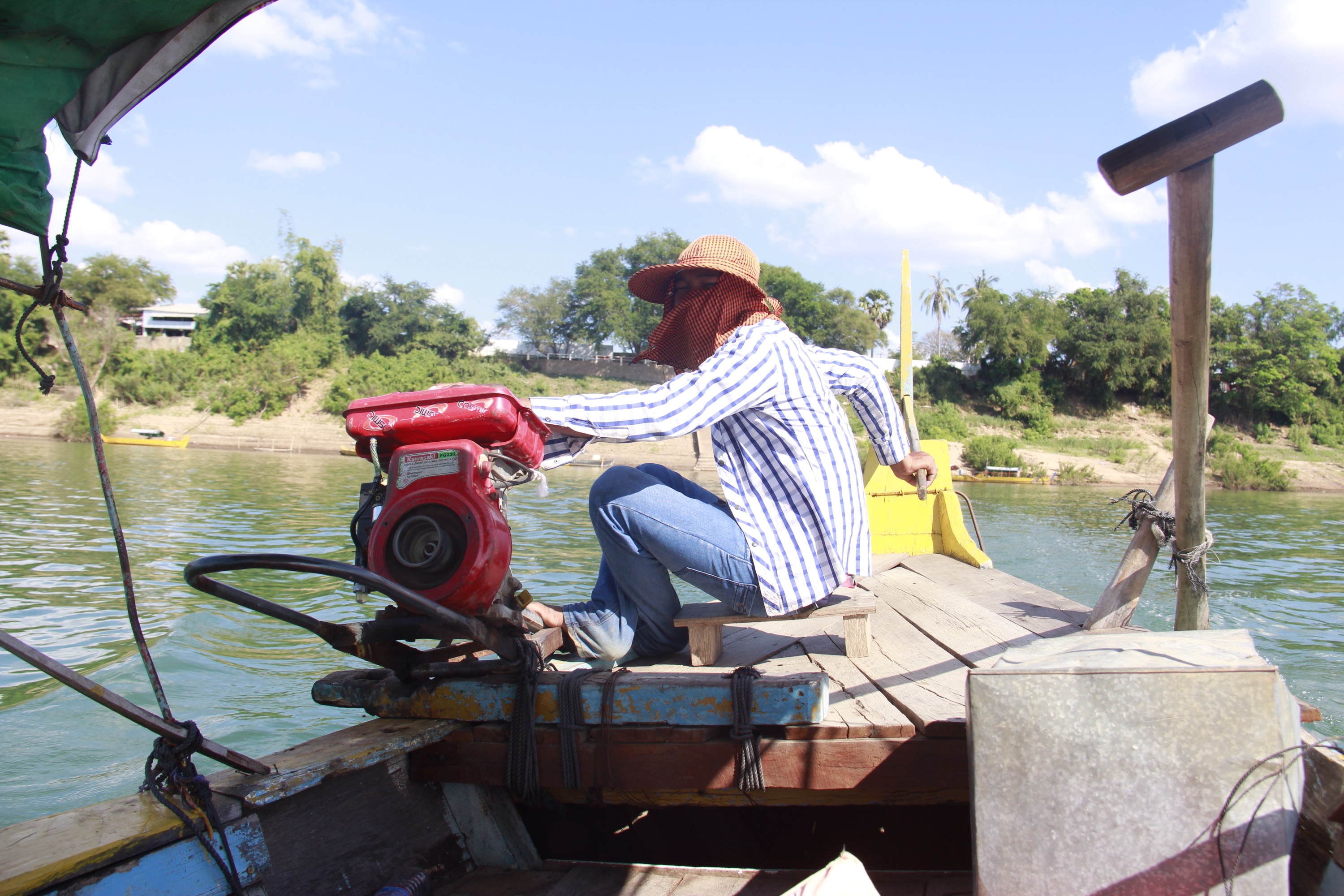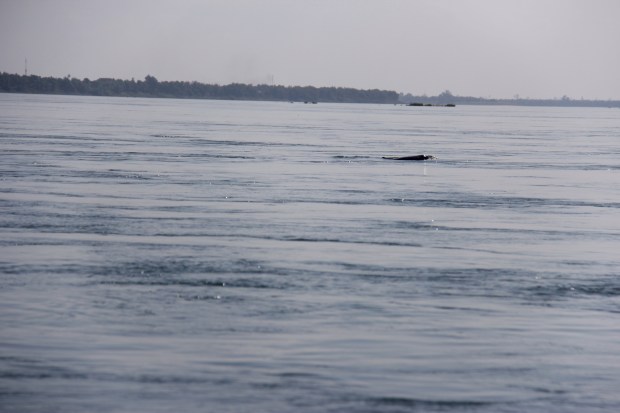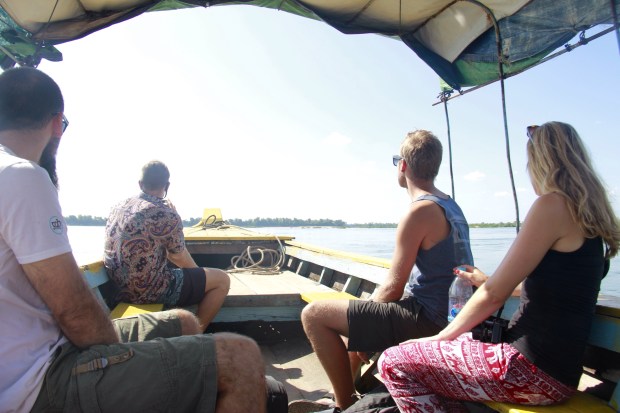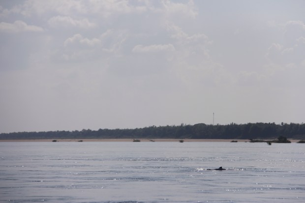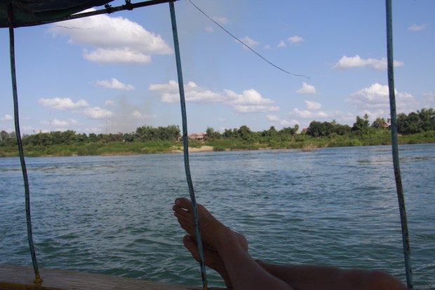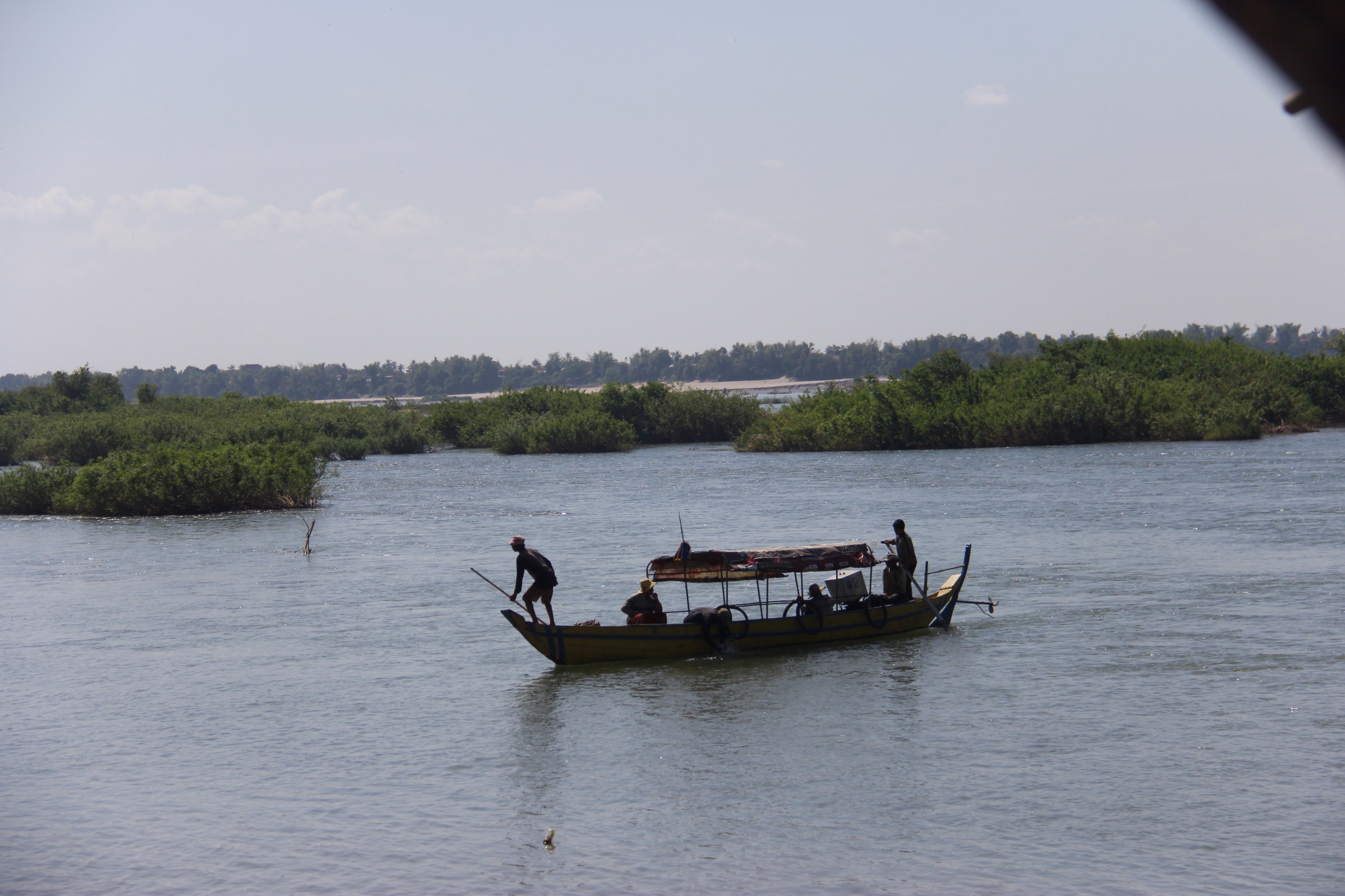 And here they are. A bit far away from us, but still living in the Mekong, the last fresh water dolphins in Cambodia. That reminded me the time I was on this catamaran in New Zealand and the skippers asked us to jump in the cold and trouble water to swim with a gang of fifty, 2 meters tall wild dolphins. Scary but unique.