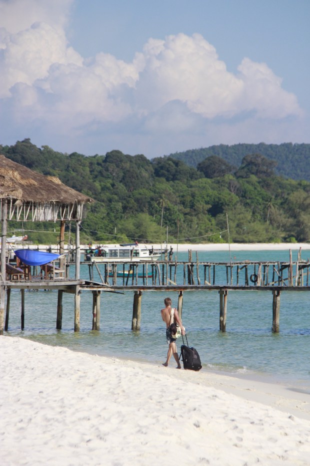 People staying there had two choices to arrive: taxi boat or a big trek in the jungle from the other side of the island, from the main pier. That’s when we saw this cute guy rolling his luggage on the beach.