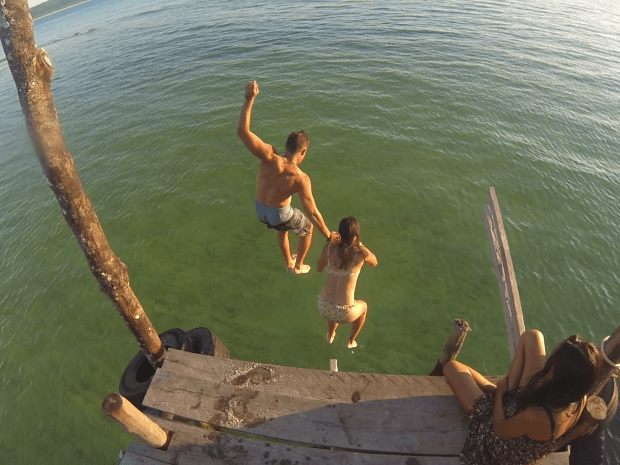The original plan was to take a pajama, some money, a bottle of water and do the turn of the island in two days. We were supposed to stay somewhere on the other side of Koh Rong but after two hours, we were both exhausted and decided to rest In Sok San Beach. Man… I rated this beach as one of my favorite place in South East Asia so far. There is NOTHING except Beauty. White crispy sand borded by the jungle, clear and warm water. We sat in the shadow, enjoying the view, next to a little camp where three Turkish guys were living. They were supposed to stay few days but they were living there for more than twelve days. Every now and then they were going to the fisherman village to buy some water, food and contact their family to send them the weekly “I’m still alive” message.