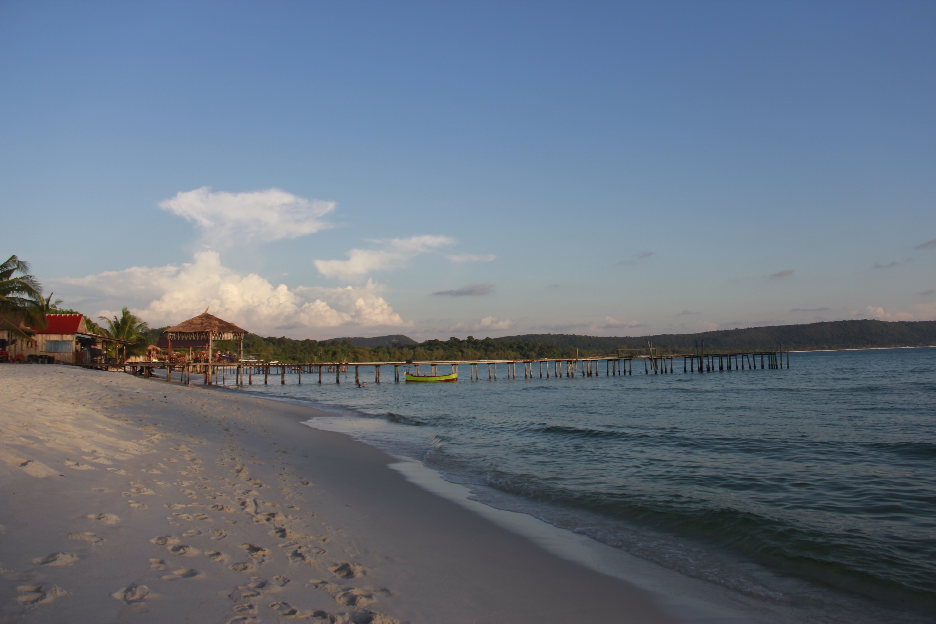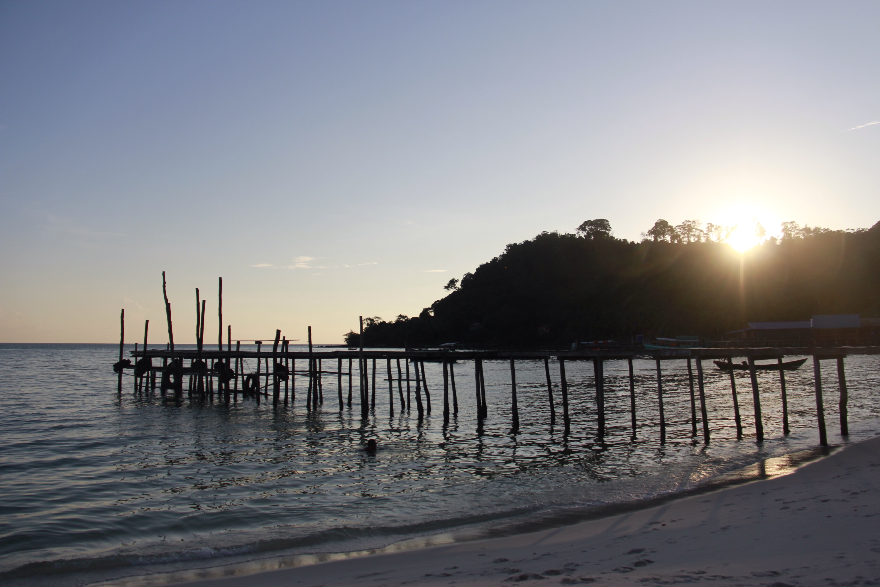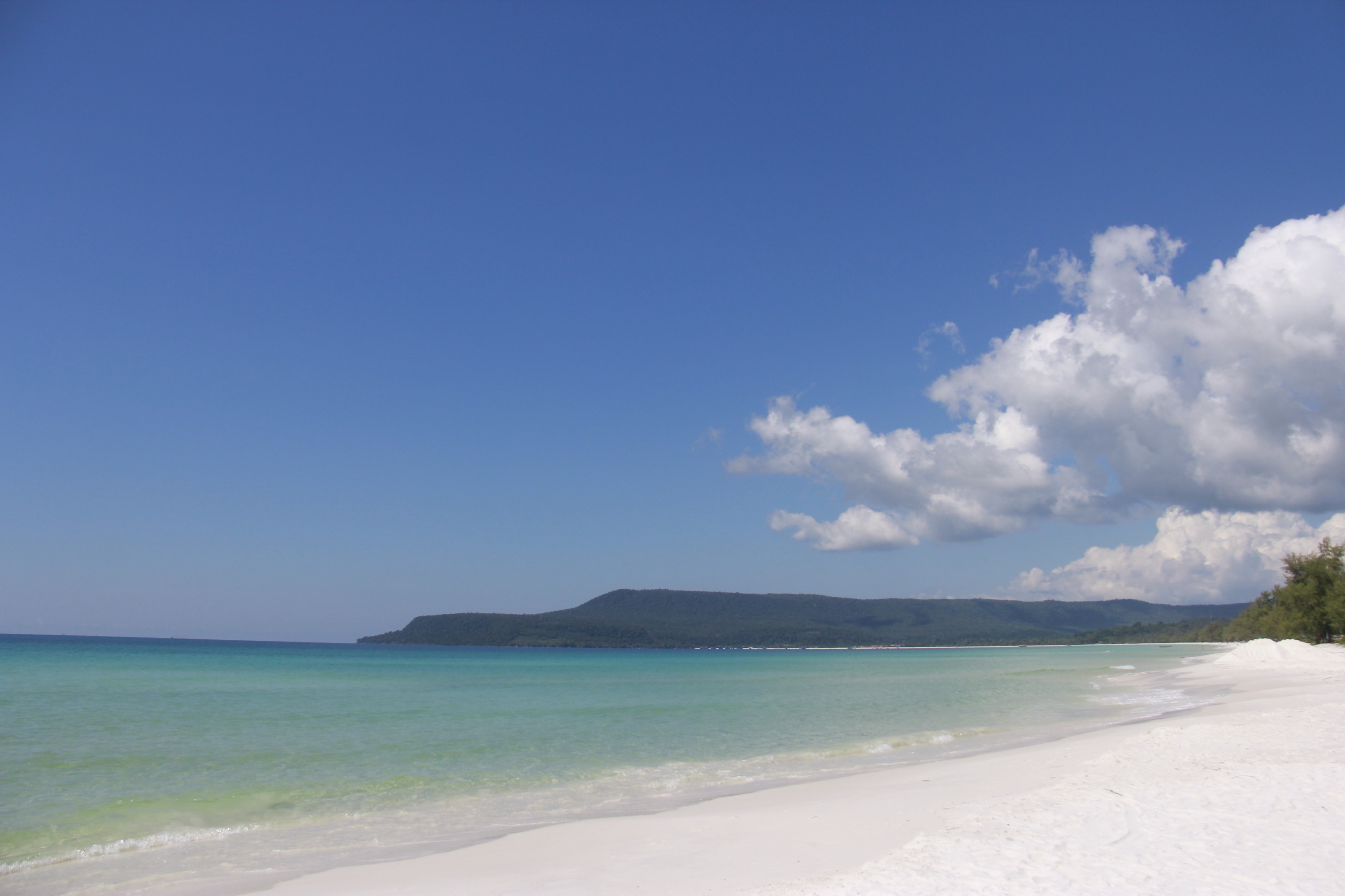 The original plan was to take a pajama, some money, a bottle of water and do the turn of the island in two days. We were supposed to stay somewhere on the other side of Koh Rong but after two hours, we were both exhausted and decided to rest In Sok San Beach. Man… I rated this beach as one of my favorite place in South East Asia so far. There is NOTHING except Beauty. White crispy sand borded by the jungle, clear and warm water. We sat in the shadow, enjoying the view, next to a little camp where three Turkish guys were living. They were supposed to stay few days but they were living there for more than twelve days. Every now and then they were going to the fisherman village to buy some water, food and contact their family to send them the weekly “I’m still alive” message.