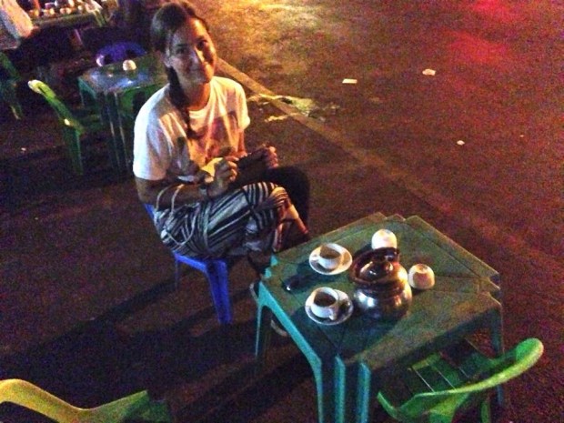 In front of a closing bar who looked more like a grocery shop than a pub, we have been nicely told to come back to our hostel because we couldn’t stay outside at night because of the curfew. A bit scared we just had a Myanmar tea in the street on some plastic chairs before heading back to our hostel.