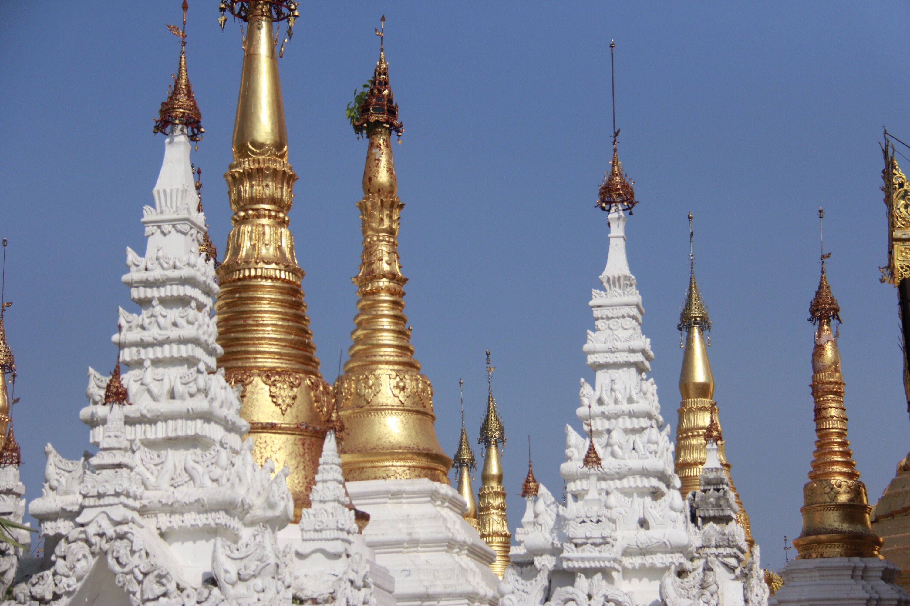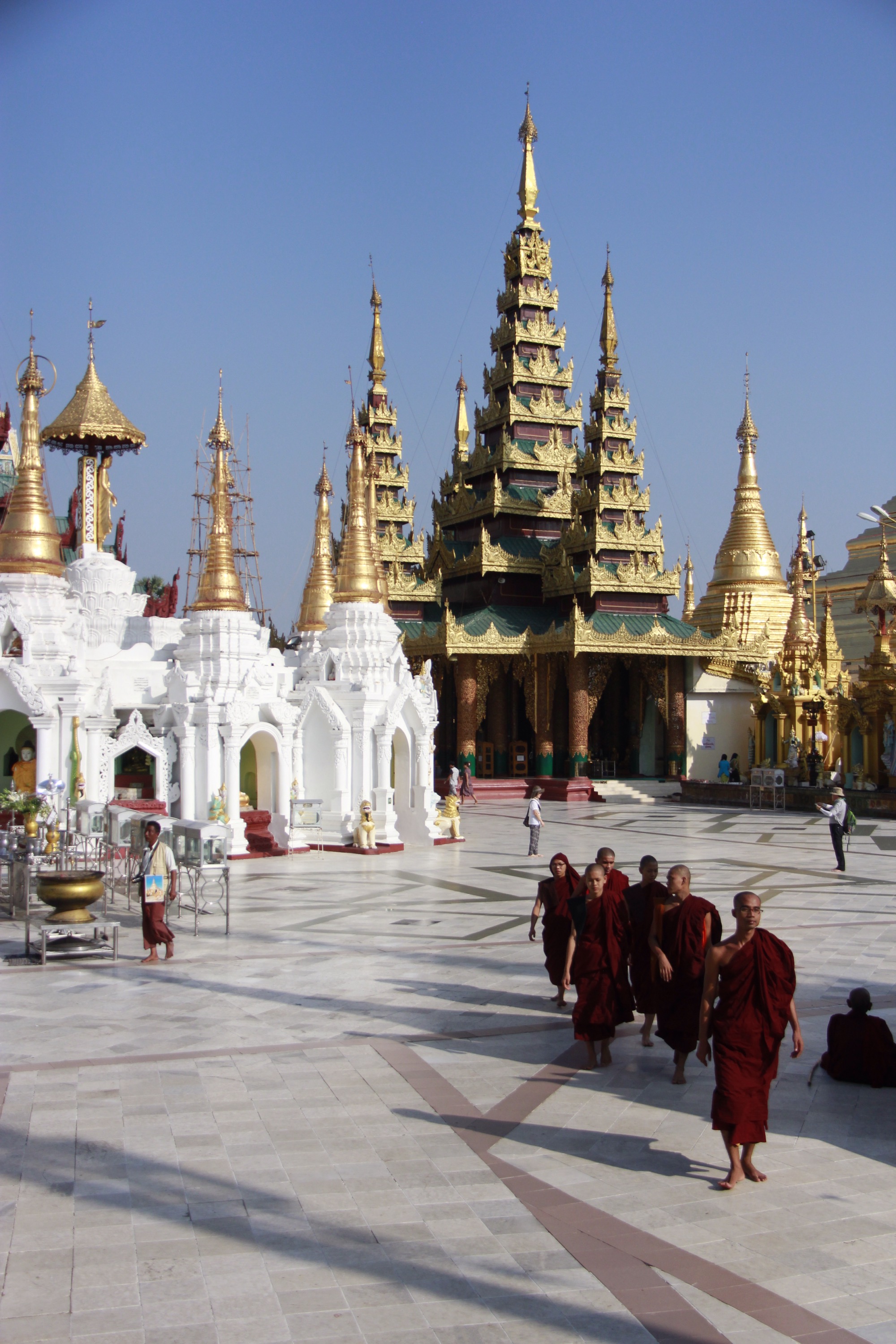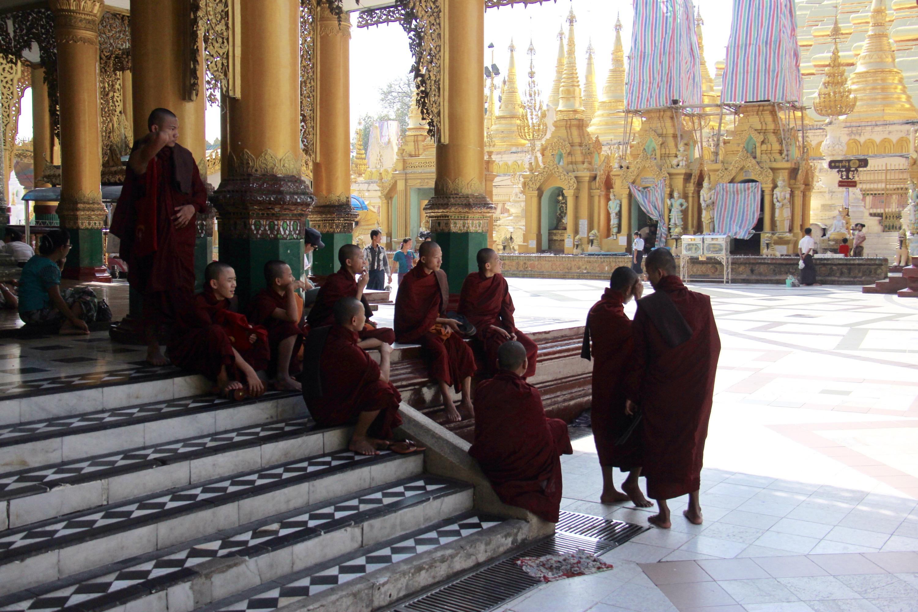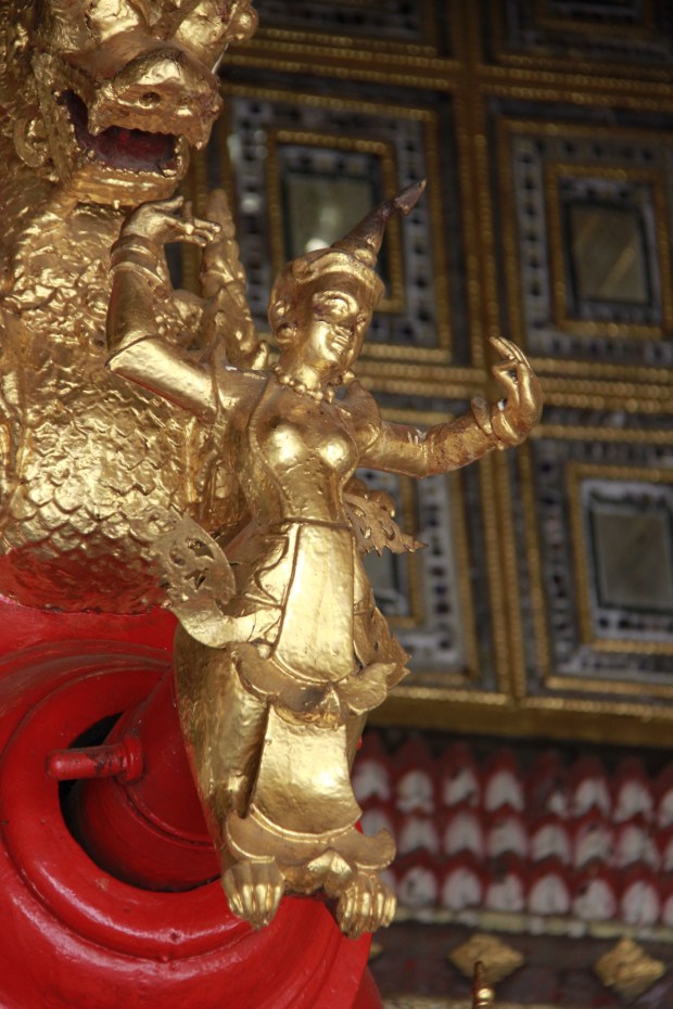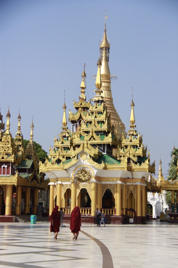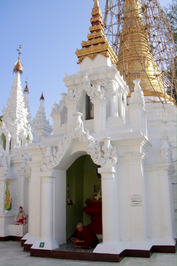 Like every Buddhist places I’ve been so far, I notice that a strong and peaceful feeling invaded me as soon as I stepped in. It is maybe all the prayers and the meditation done in one place, or the contact of the cold stones on my barefeet, or maybe this vibrant and intense gold shining over the white stupas and pagodas…