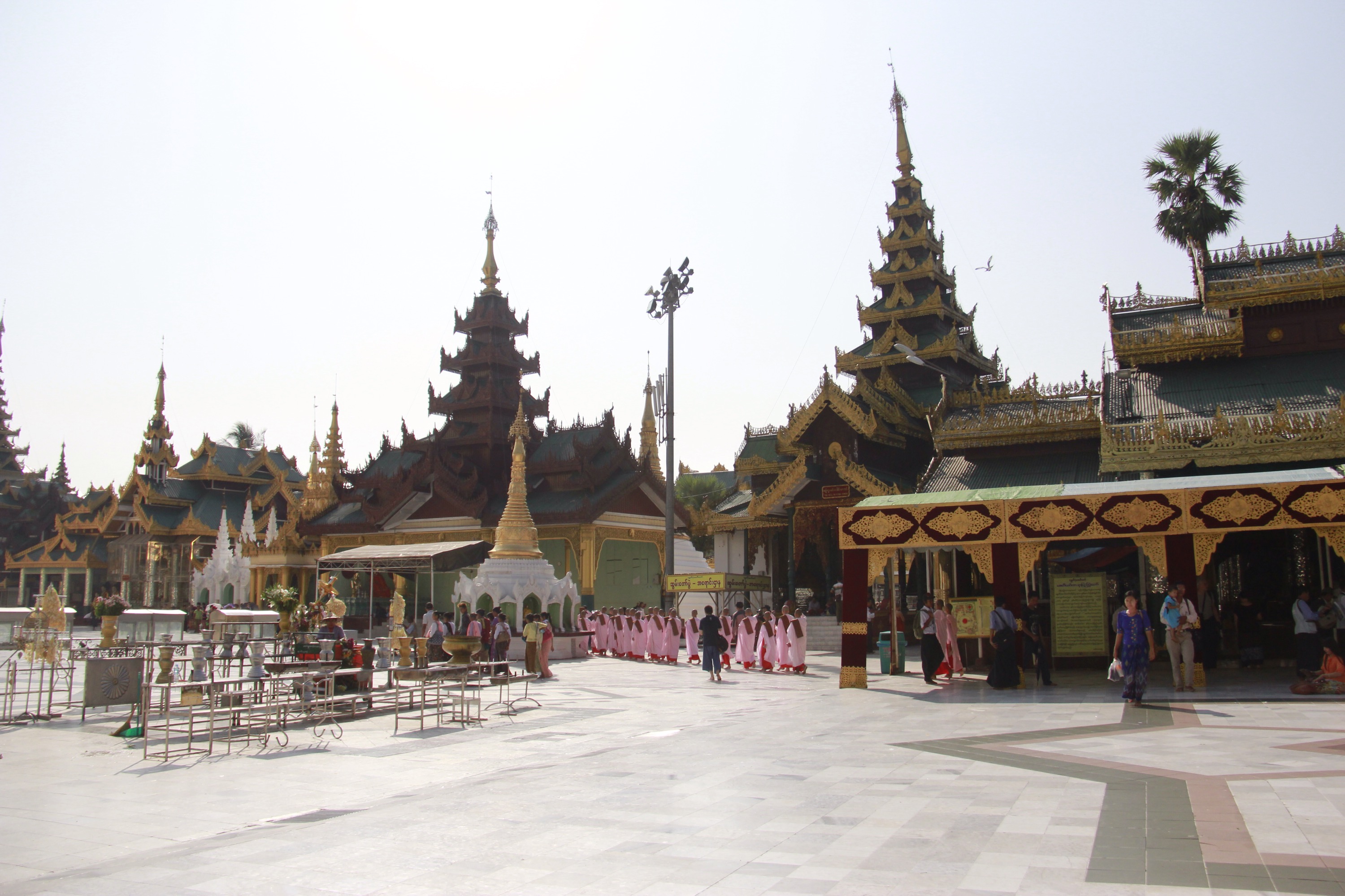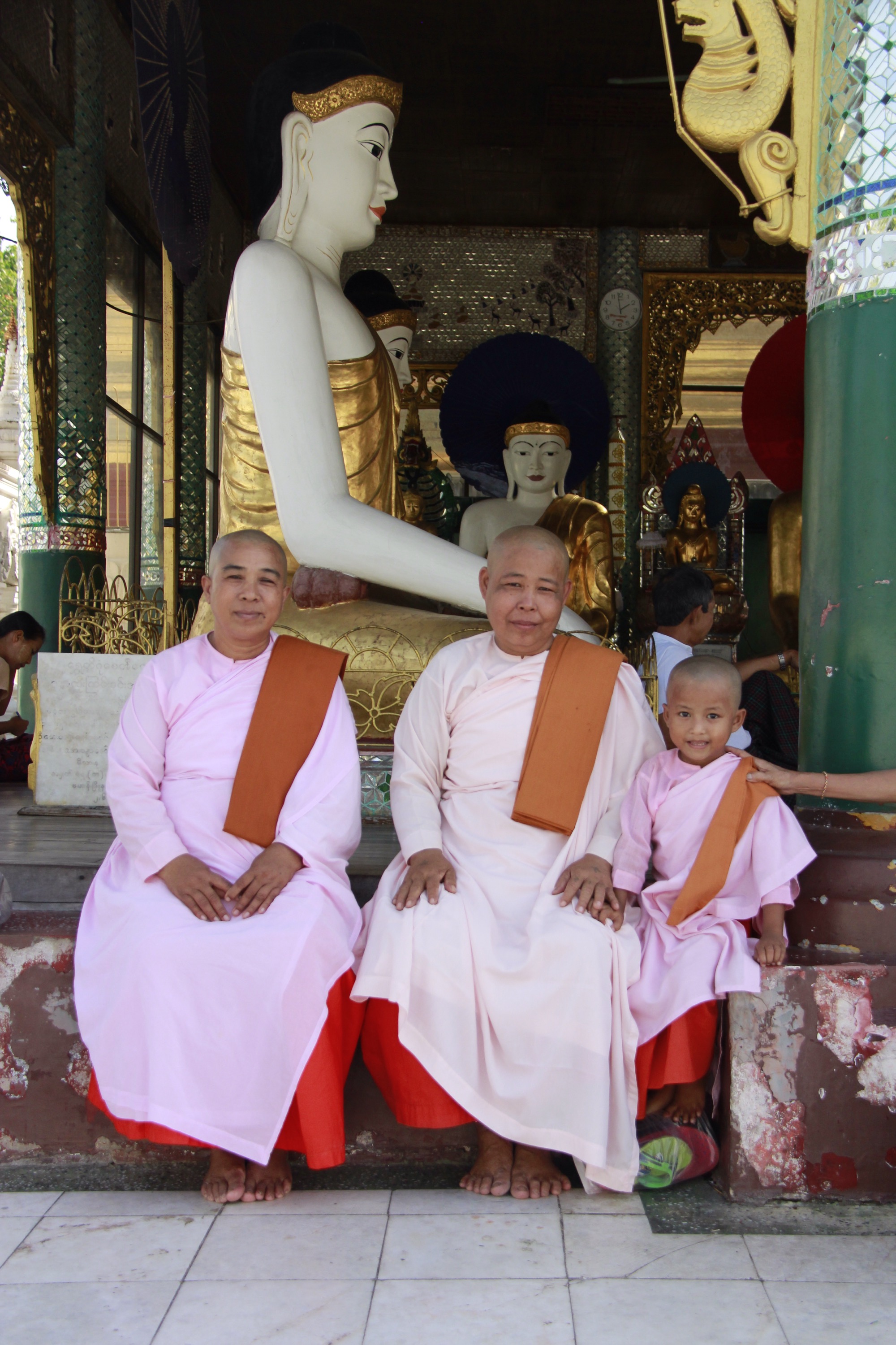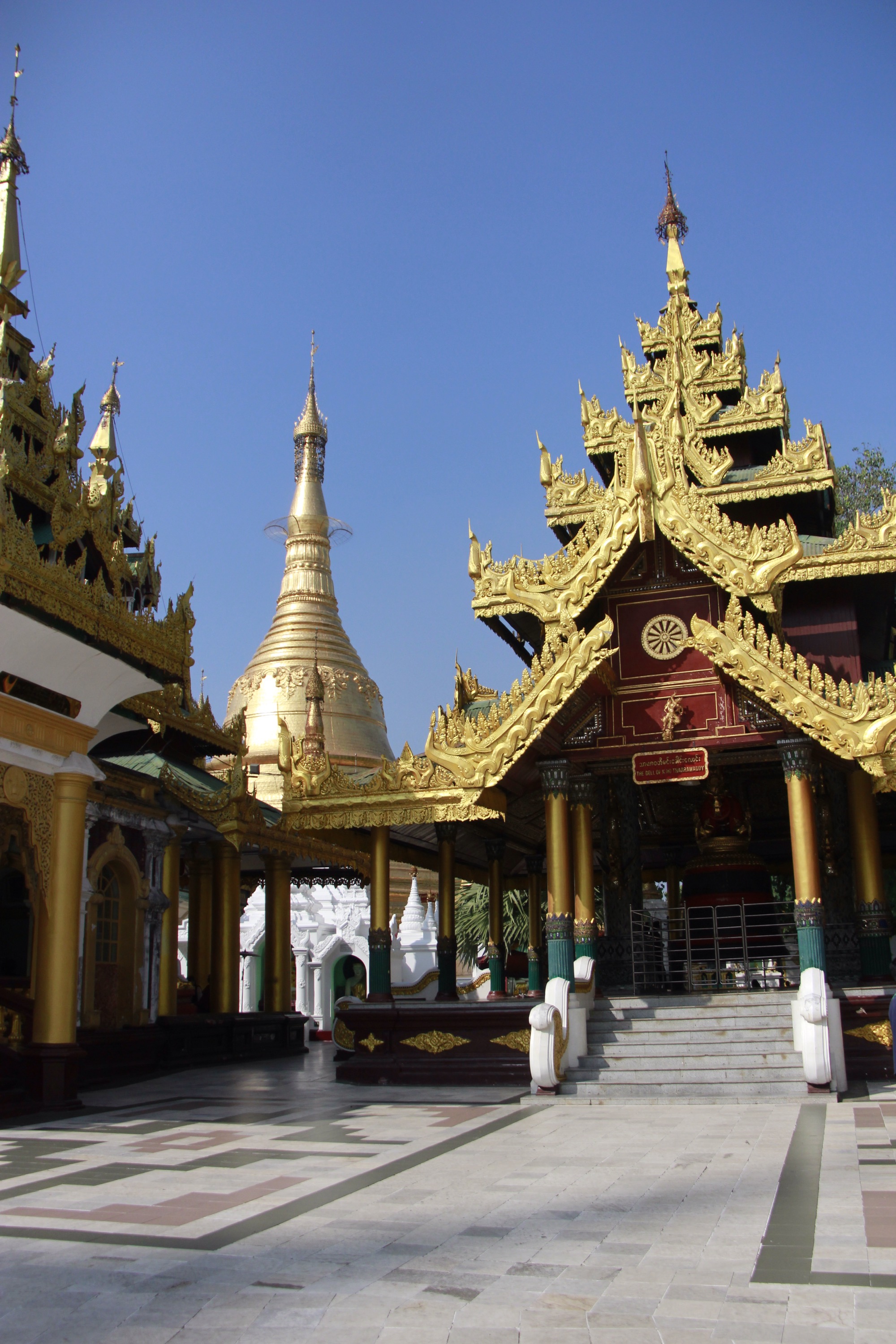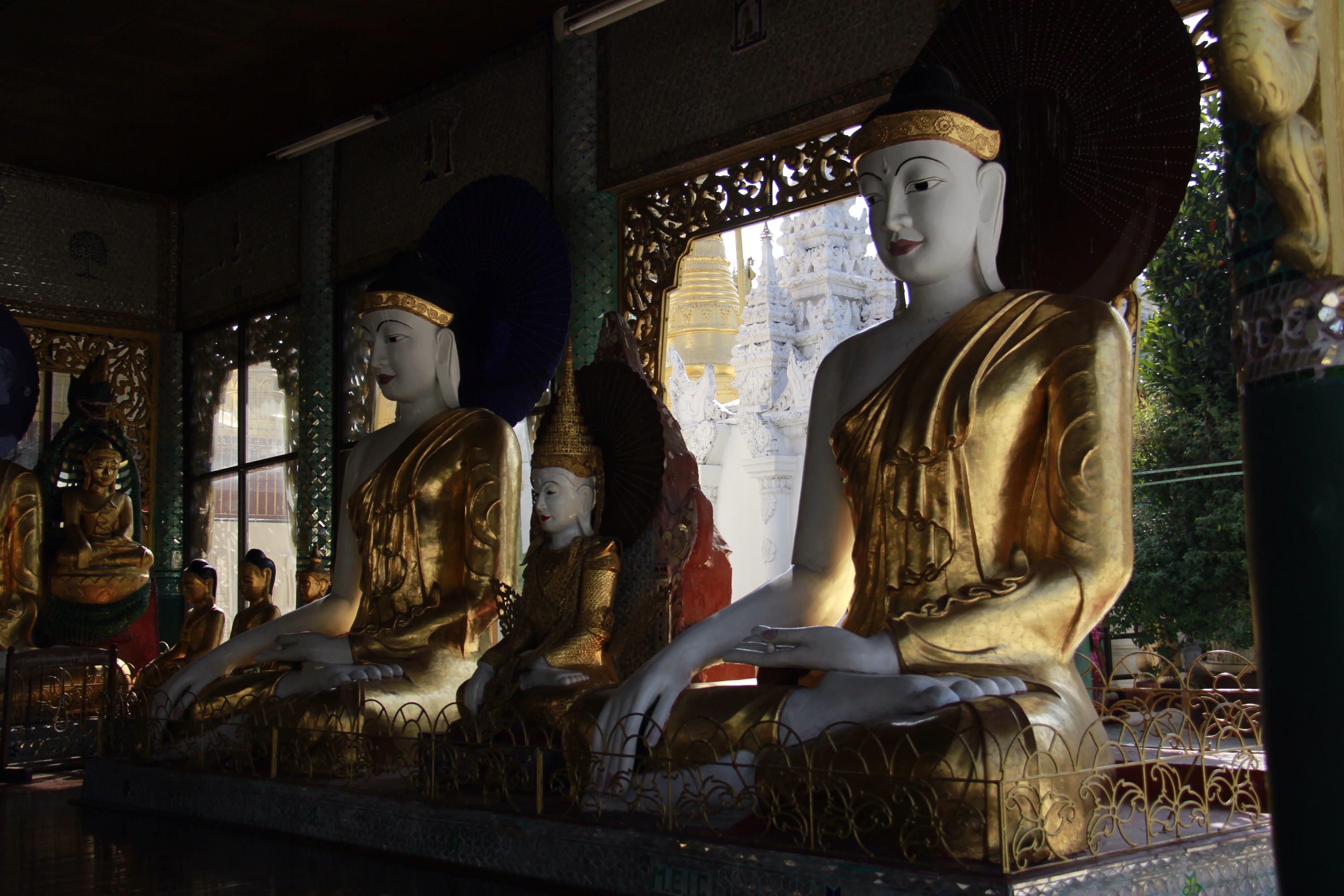 Like every Buddhist places I’ve been so far, I notice that a strong and peaceful feeling invaded me as soon as I stepped in. It is maybe all the prayers and the meditation done in one place, or the contact of the cold stones on my barefeet, or maybe this vibrant and intense gold shining over the white stupas and pagodas…