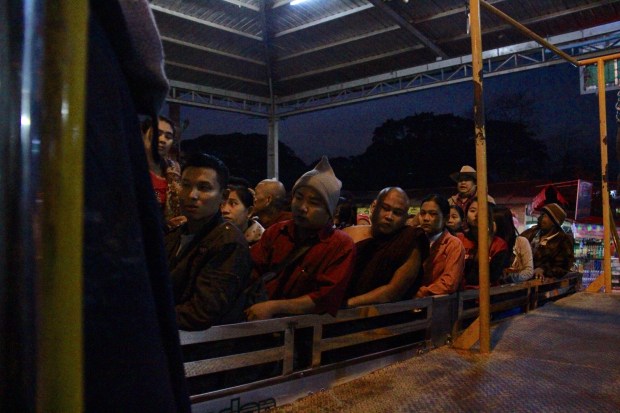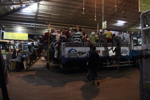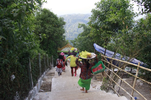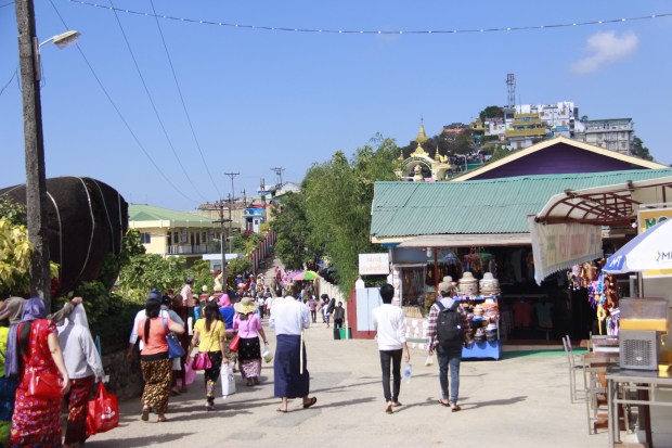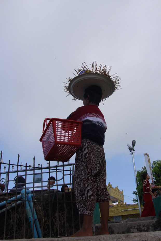 You have two solutions then: staying there and drink coffee one after another or ask for a place to sleep. I didn’t want to be tired for the next day and sleeping on the table was not a solution. Nobody could really explain me how to reach the Golden Rock before but a group of nice young guys from Yangon and doing the pilgrimage decided to be my guardians Angels that day. After resting few hours on the floor in a closet – sorry, bedroom – they showed me the way to take the only transport existing to reach the Golden rock area. One of them even paid for my entrance fee. I was amazed how kind and nice they have been to me.
