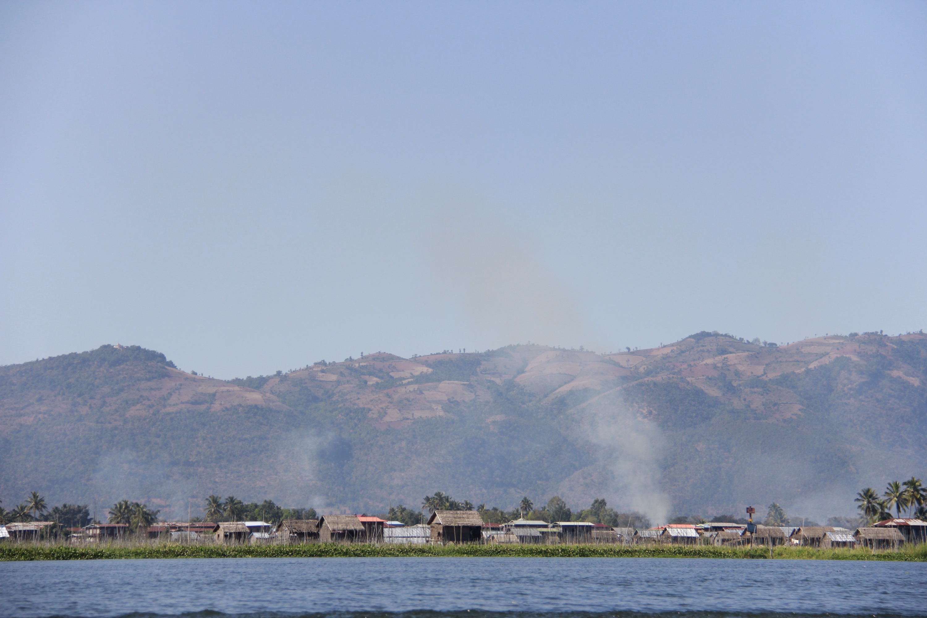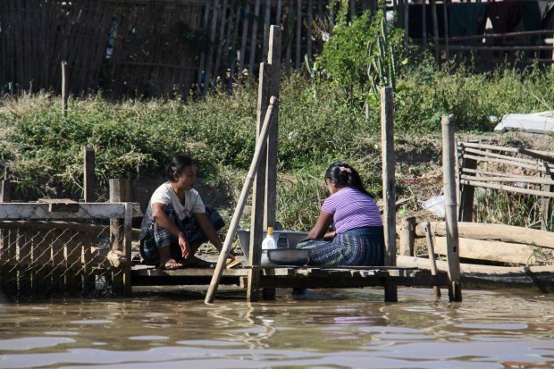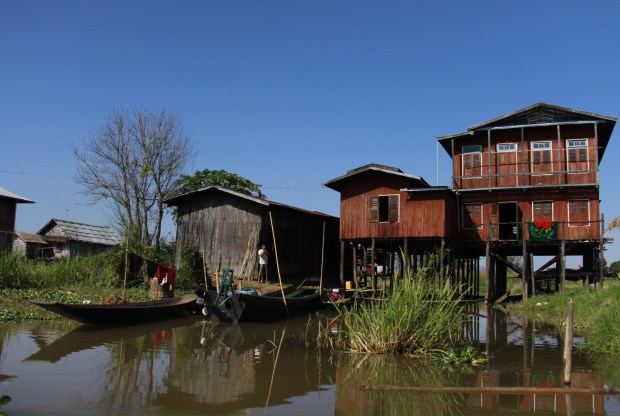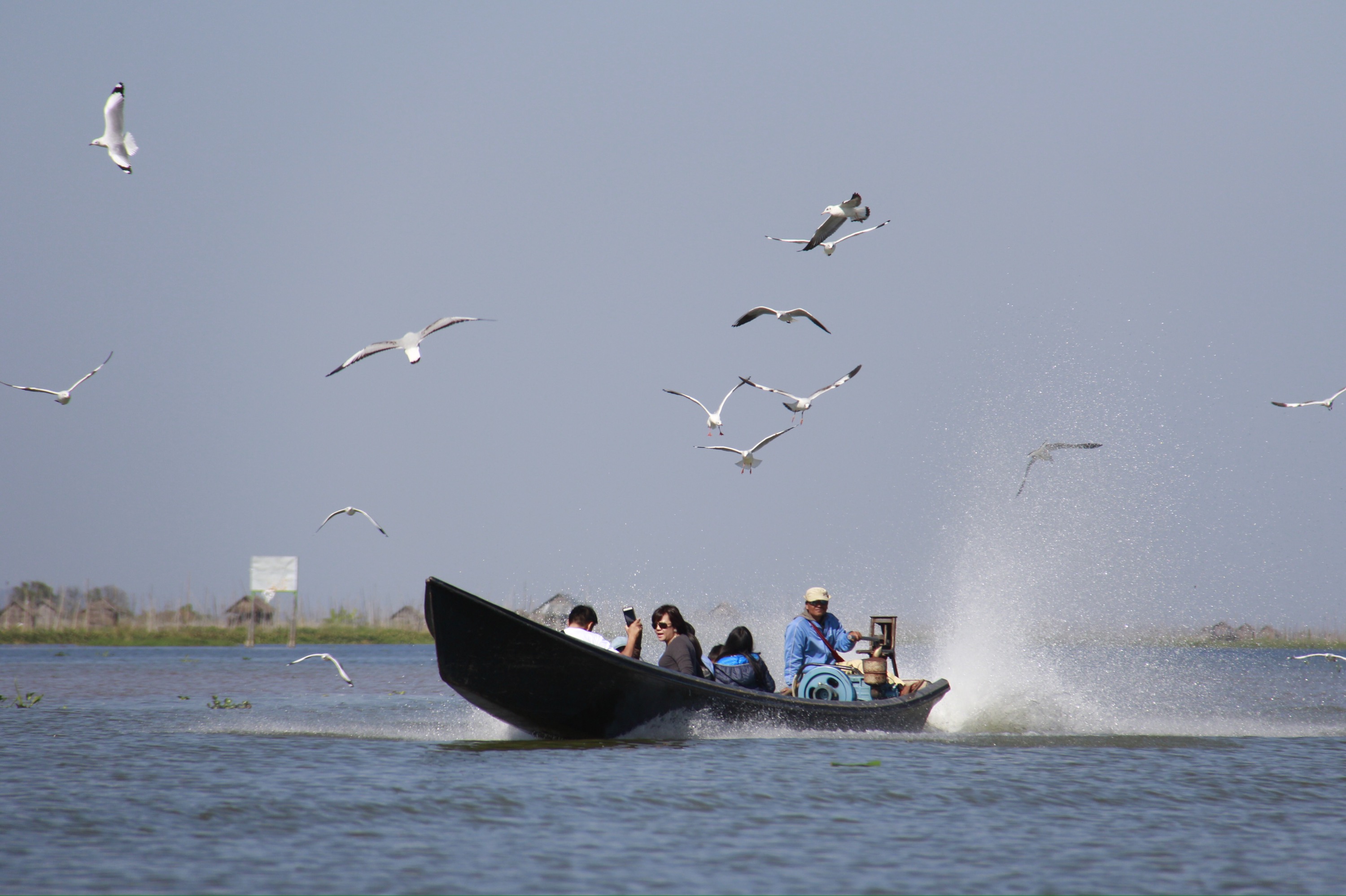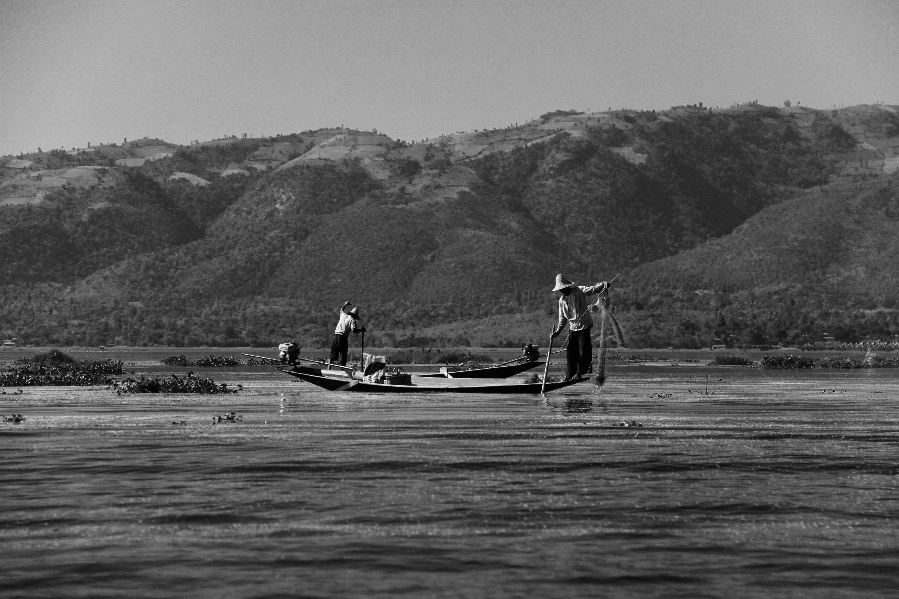 The last part of the trek is actually a boat trip to the lake Inle. Fisherman are staying stable on these long boats and are fishing with what it looks like… Their feet.