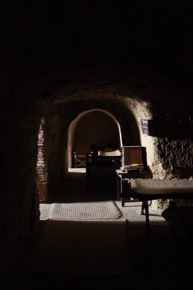 There is a monastery quite unique, into the stones. An old man showed me the troglodytes and explained to me that monks were coming here to meditate and sleep.