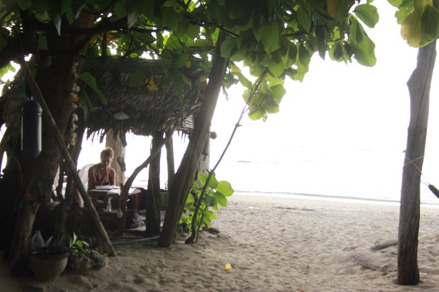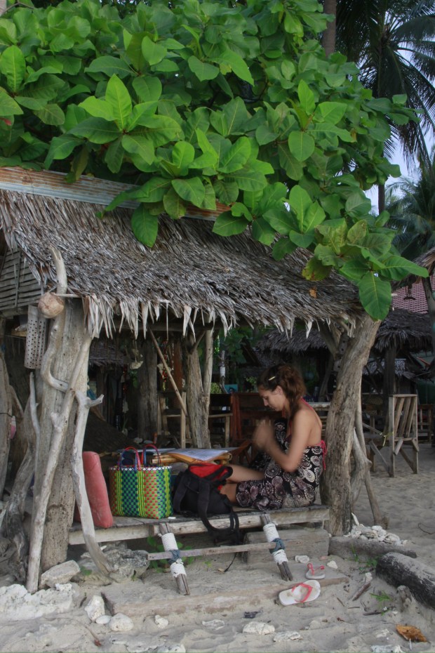 It’s the last day of the year and all the hostels, guesthouses or hamacs on the beach are full when we arrive on the island. With Alexia, a French girl met in the van, we do a two hours walk in search of a bungalow who will costs us less than an arm to spend the night in.