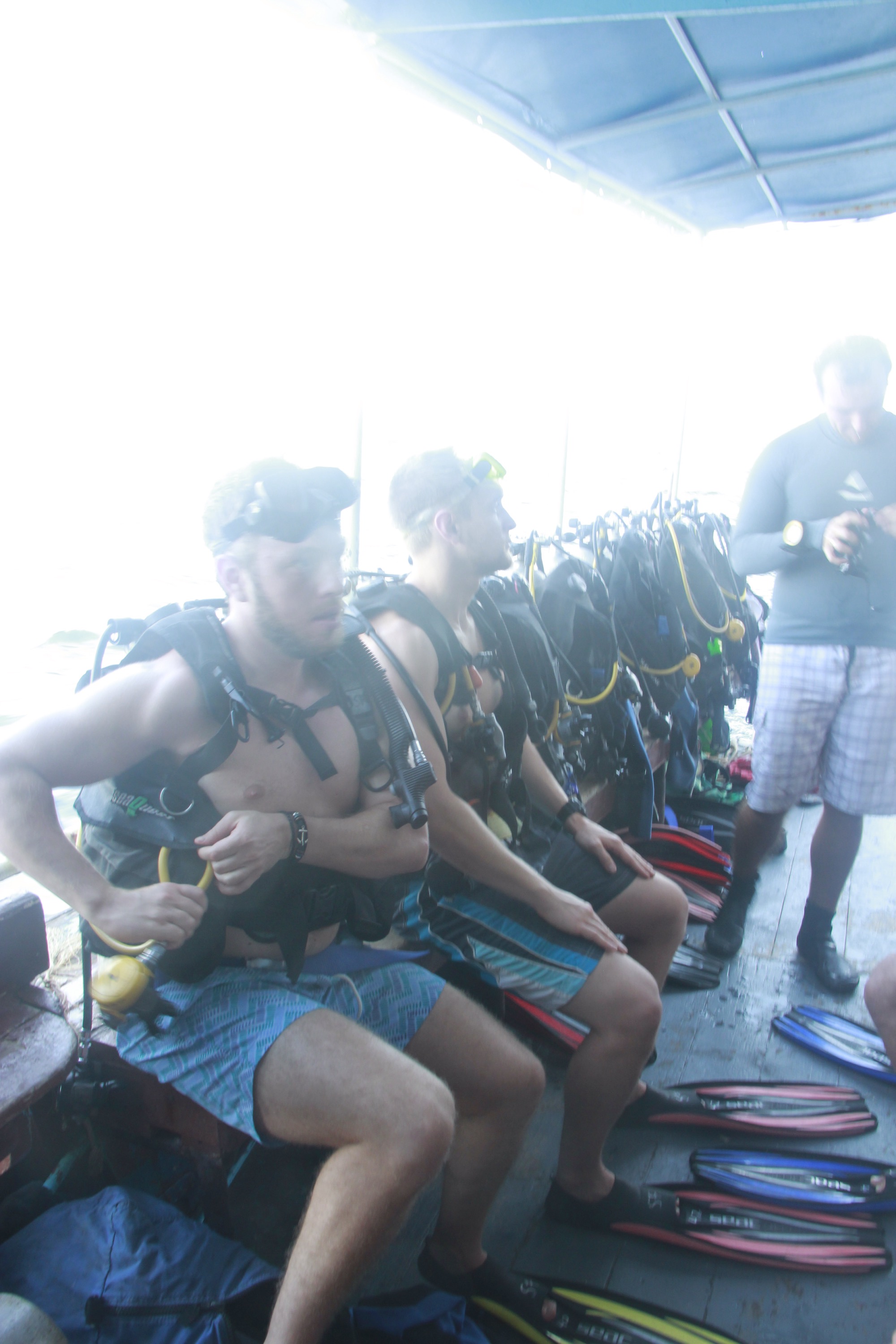As we started our journey under the sea after deflating our bc, all I could see was this intense blue surrounding me. I was just behind Jon and after few kicks of fins, he turned around to signal me a black tipped shark, basically three meters away from us.