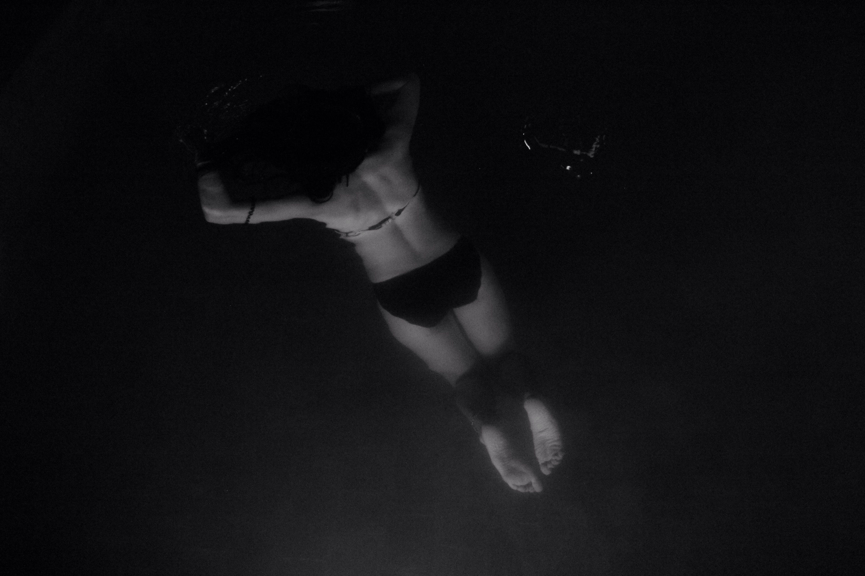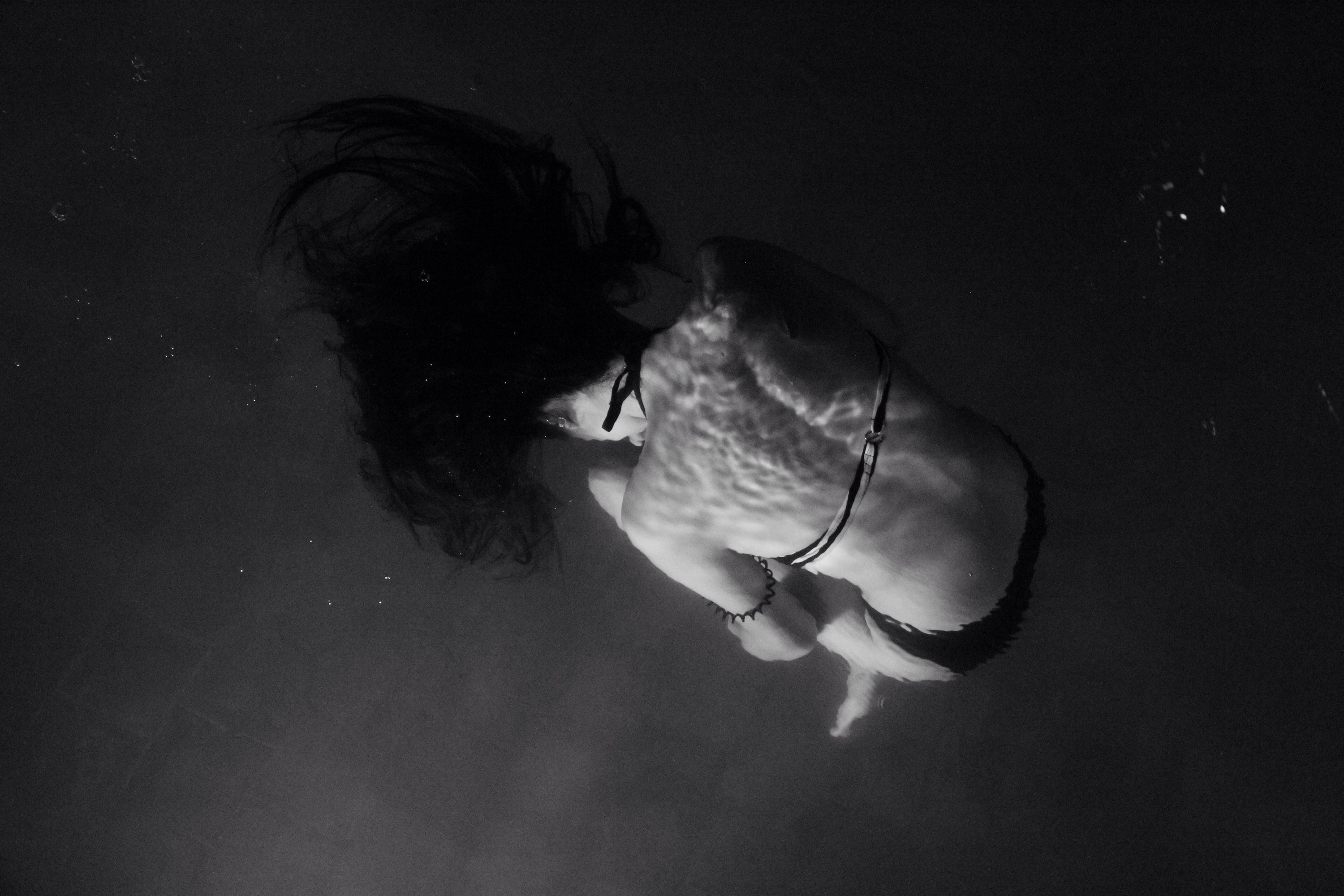 We spend the night searching for some booze (kind of impossible to find around) and in the swimming pool, taking pictures at each other’s in the water. A kind of artistic photographic research that I missed so much doing… A dark and emotional serie appears after few shots…