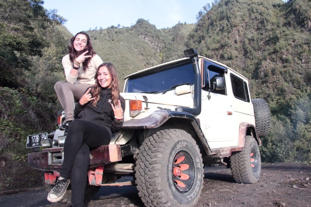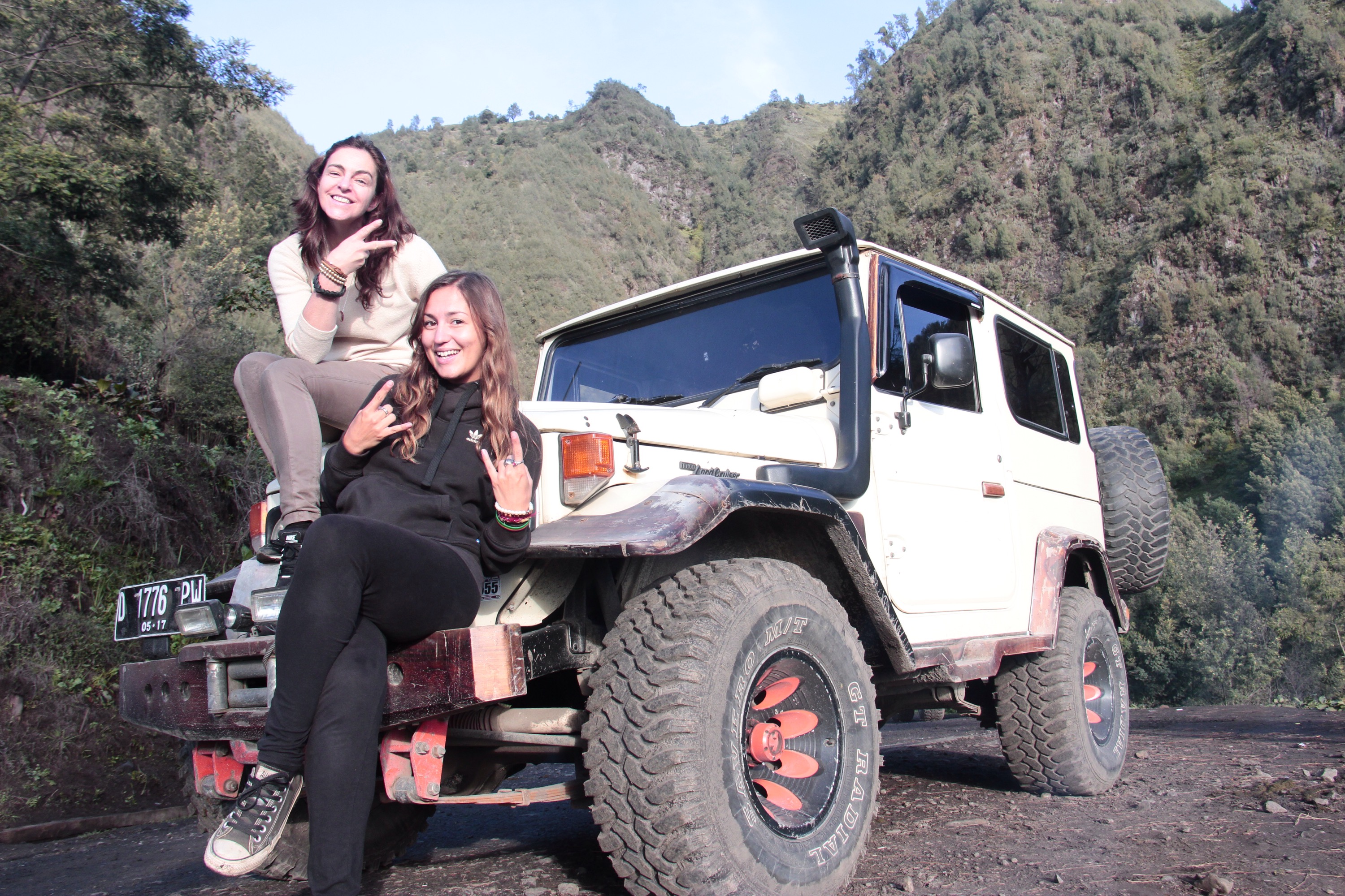 The next day, we woke up at 3am. Let me tell you that I didn’t take any shower. I just jumped in my converses, put my big jumper on and twisted two scarves around my shoulders. They packed five of us in a small jeep (because Indonesia is still south east Asia and why putting only three people in a place made for three people if we can put two more inside?) and we start climbing a mountain in the dark cold night.