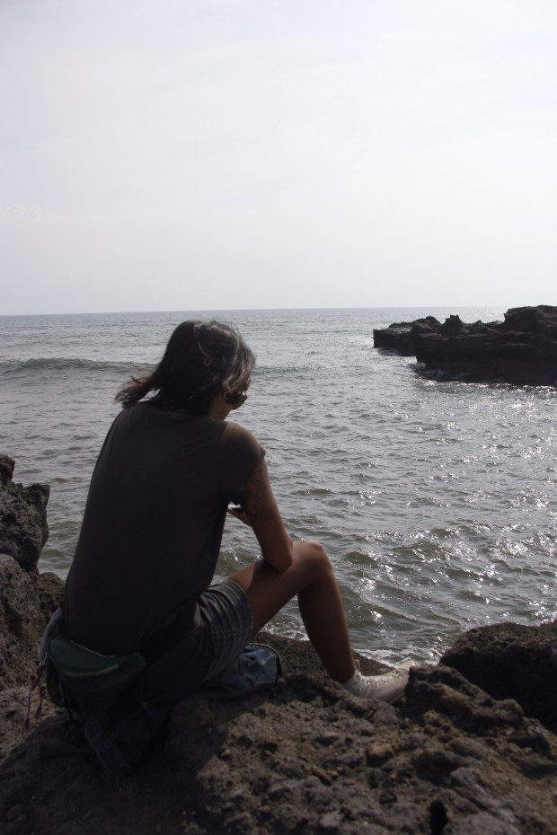 Sashi drove me to her secret temple. A sort of alternative Tanah Lot, a black temple planted on a rock emerging in the sea, a quiet and peaceful oasis offering a place to rest for birds, an abundant and fertile seaside ravishing for fisher kids and seagulls.