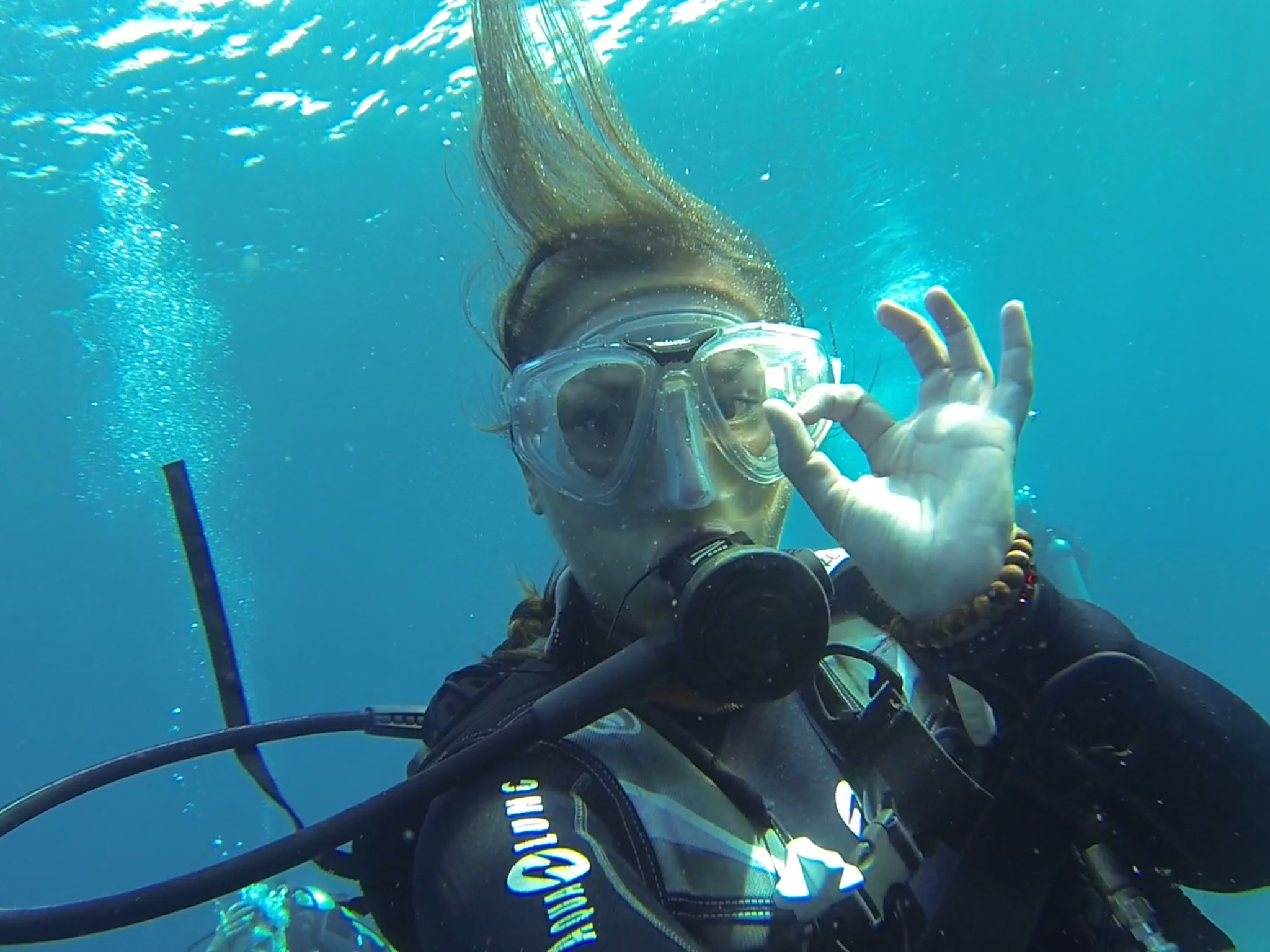 Ok sign to my buddy. I deflate my BC and I slowly dive into the deep blue. My ears start to feel the pressure, I pinch my nose and blow gently to equalize. My heart is still dancing the Krump in my rib cage but as everytime I dive, I enter into this kind of peaceful trance. It’s like being in the right place, coming back in the belly of your mum.