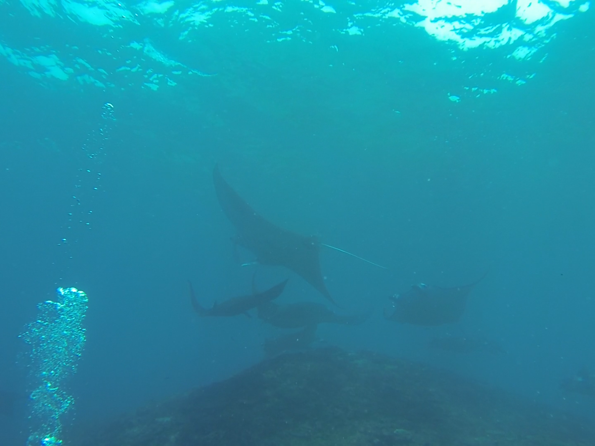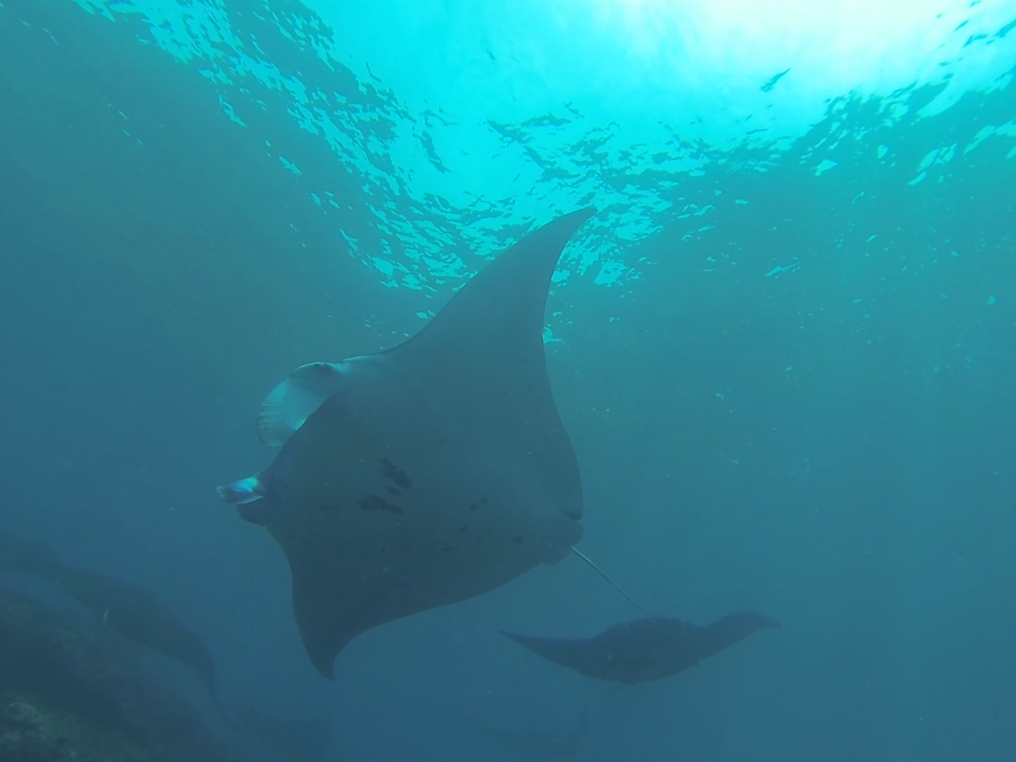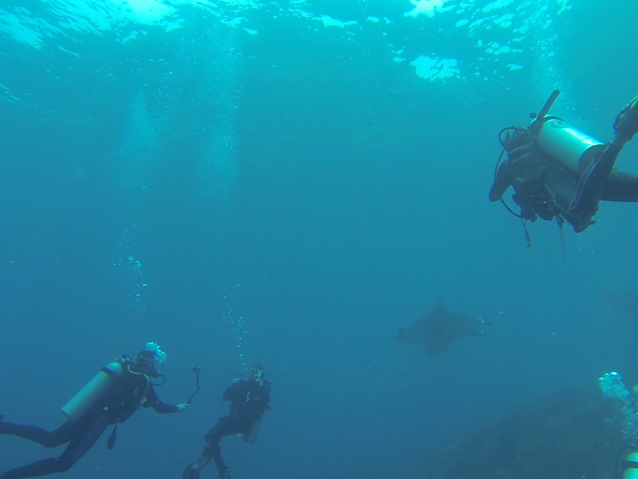 One in a while, a graceful Mantas is flying above us, giving us a smile before disappearing into the Dark Blue.