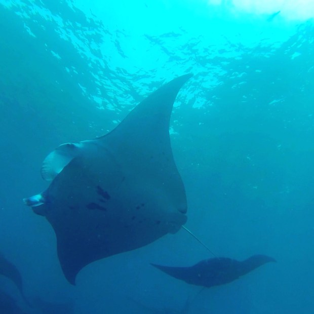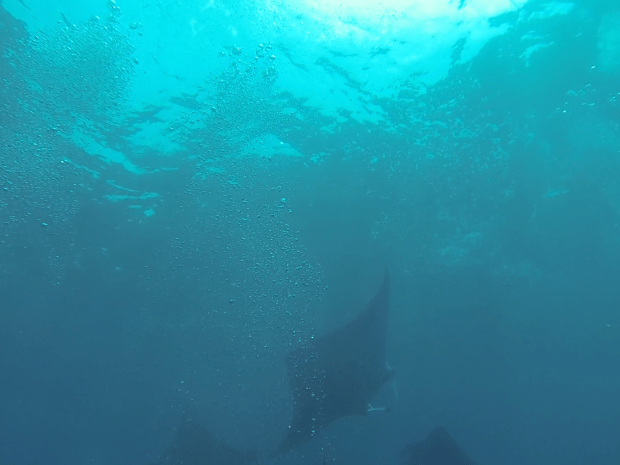 I adjust my mask on my face, keep the regulator on my mouth with my other hand. My heart is racing, beating up as fast as a dub step track but I am determined and push myself back into the deep blue. I have a meeting with few Manta Rays chicks today