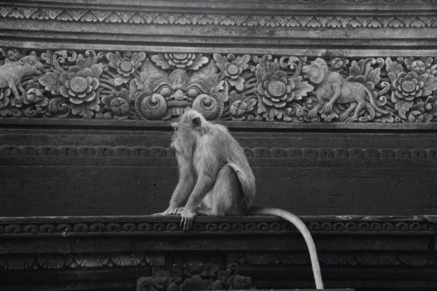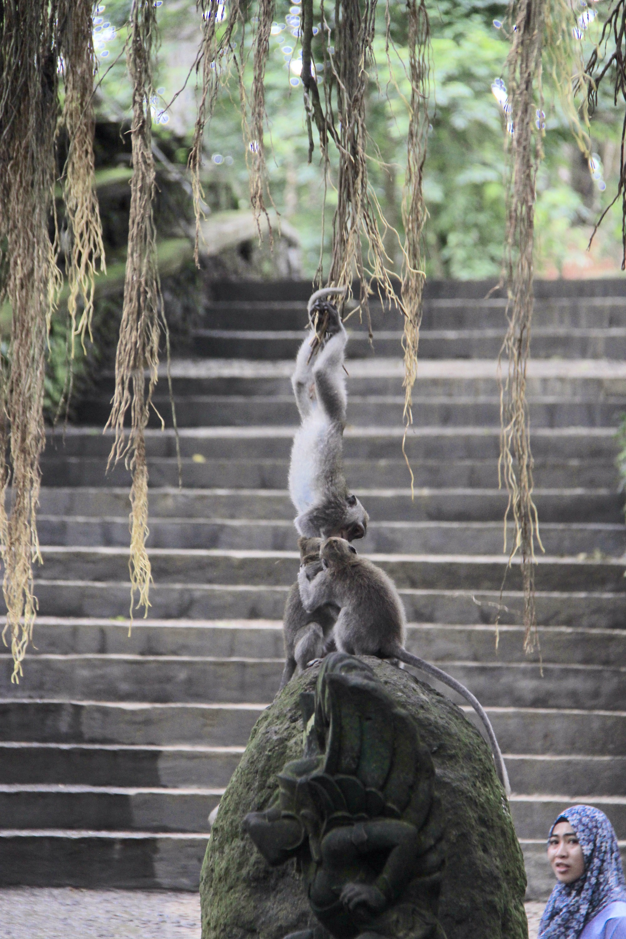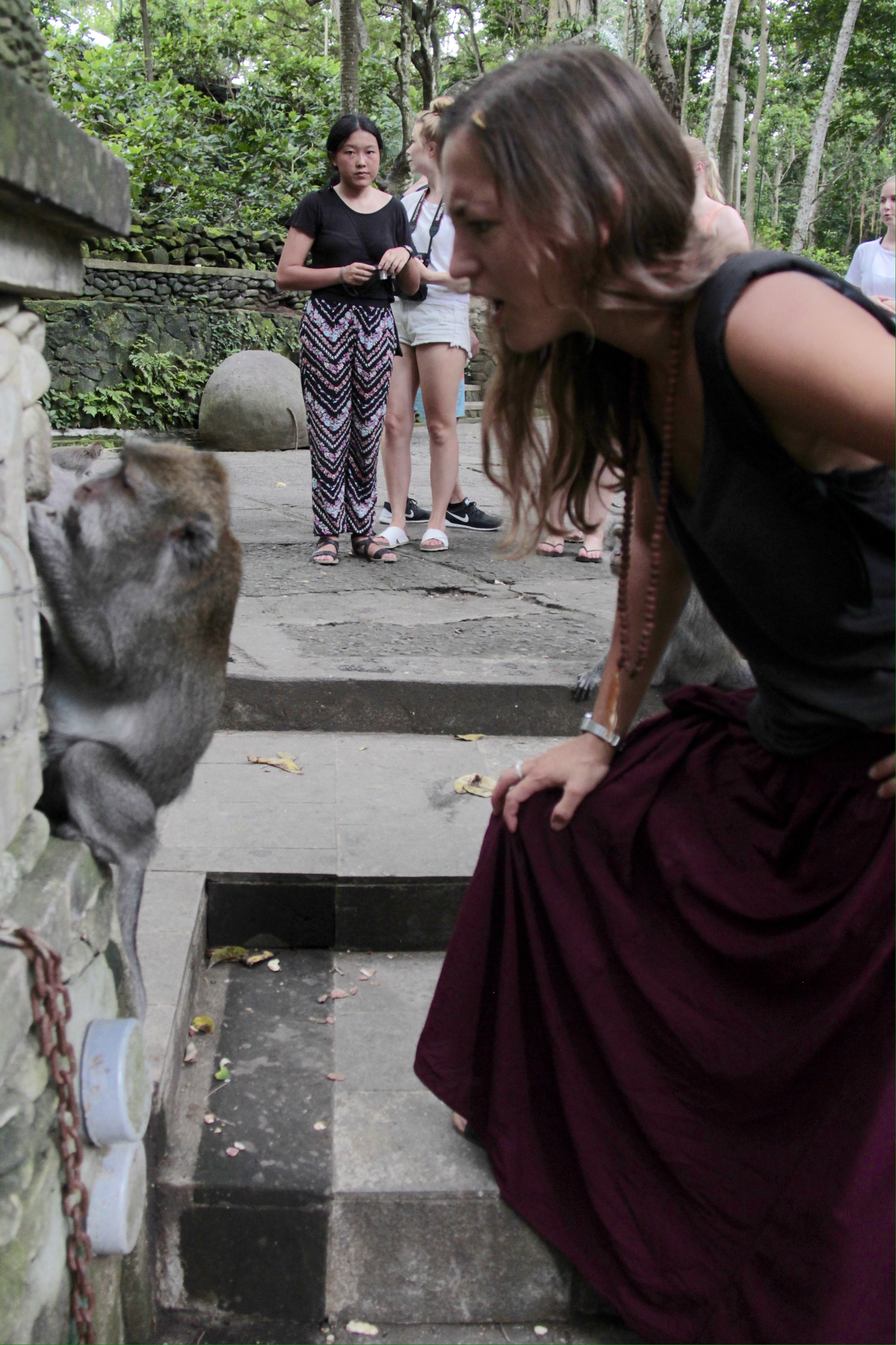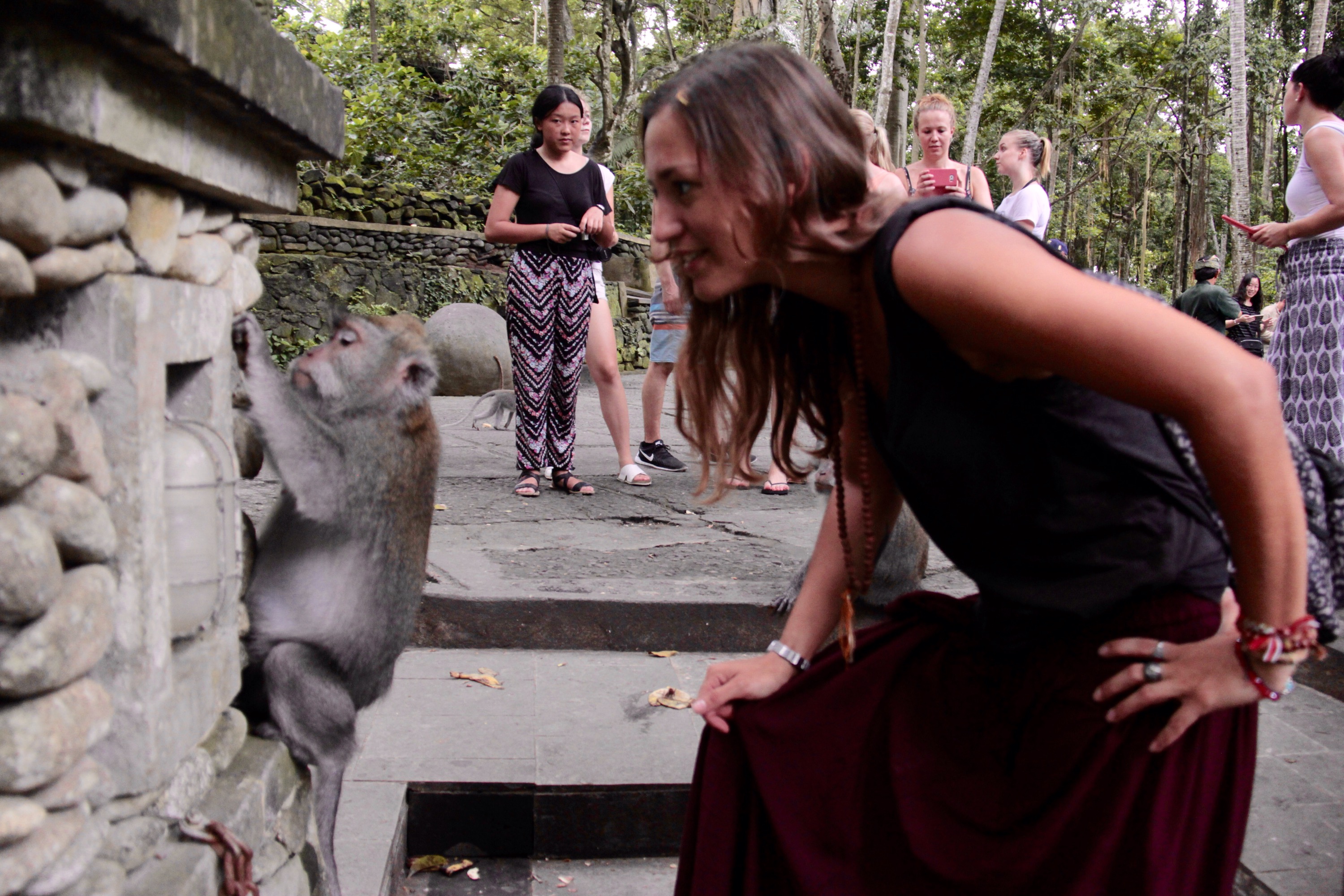 Around me, a lot of tourists and monkeys. The interaction is a perfect metaphor of two foreign worlds that suddenly meet: oil and water, light and darkness, the wilderness and the urban citizen.