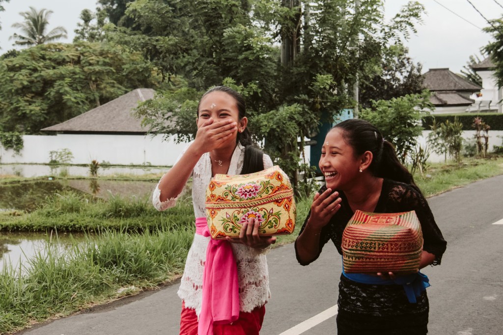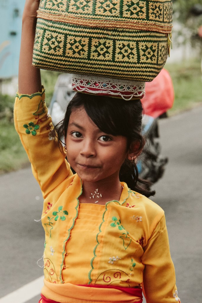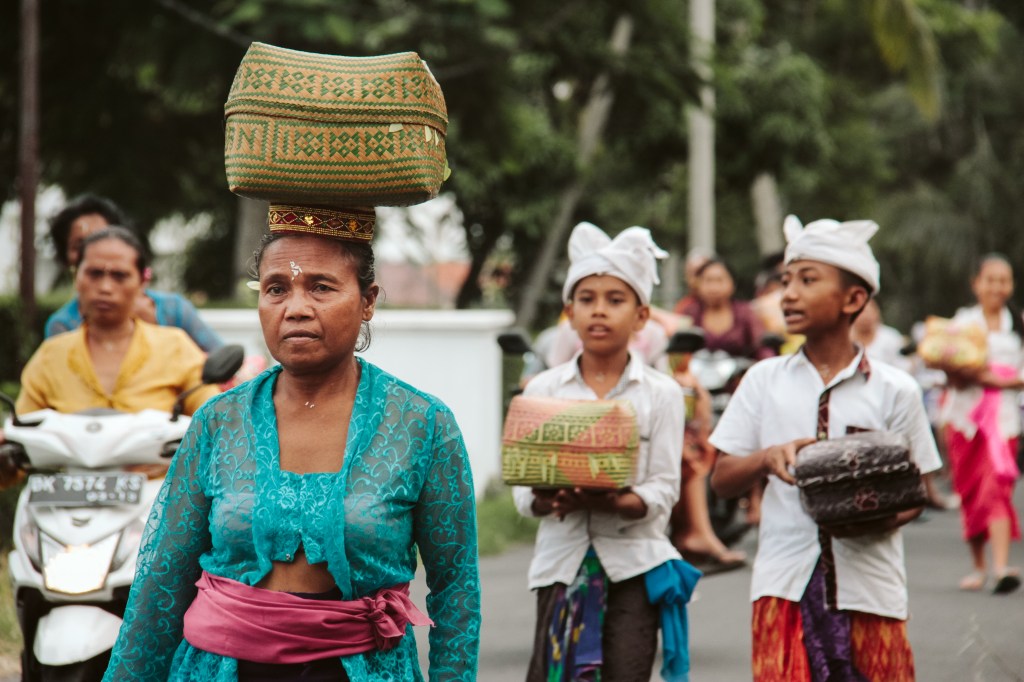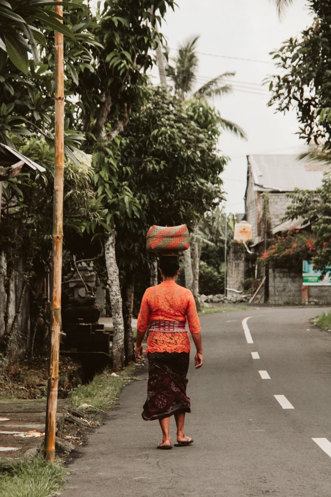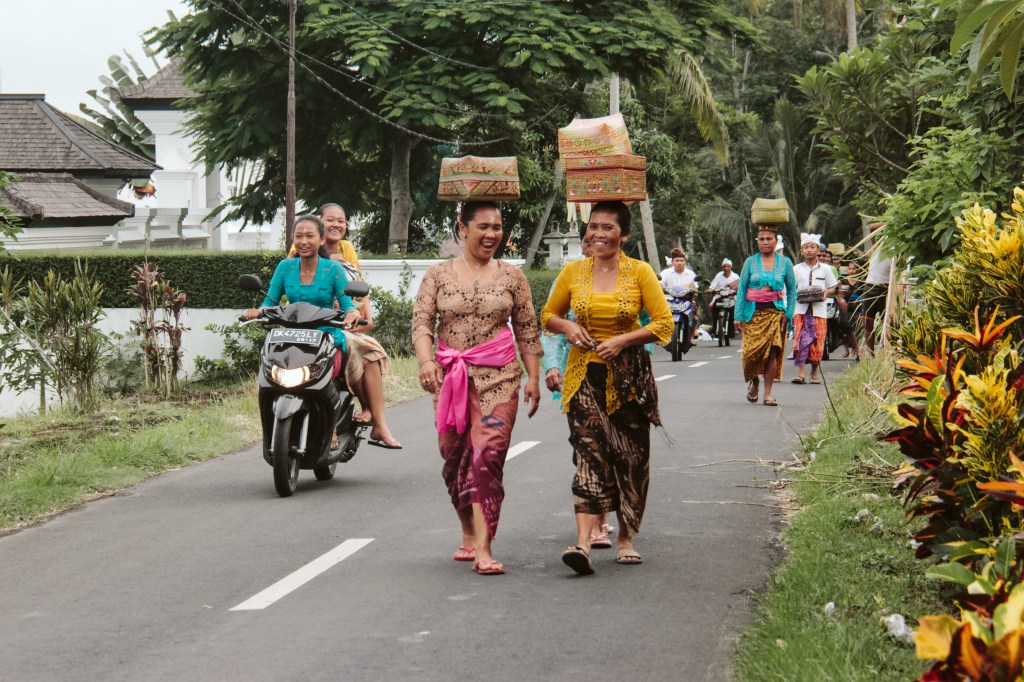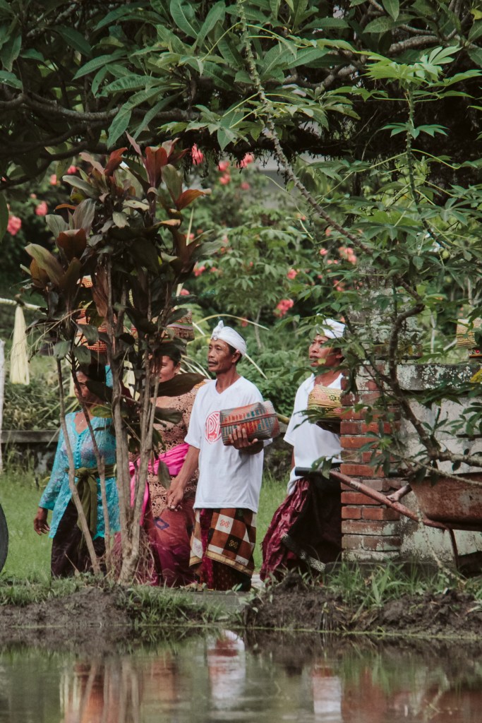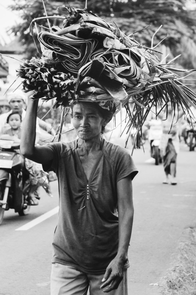 Driving back home that day, I encountered a procession of villagers all wearing their celebratory outfits, holding baskets on their head and carrying leaves. They had rice on their throat and on their third eye. I stopped on the side of the road amazed and observed from afar.